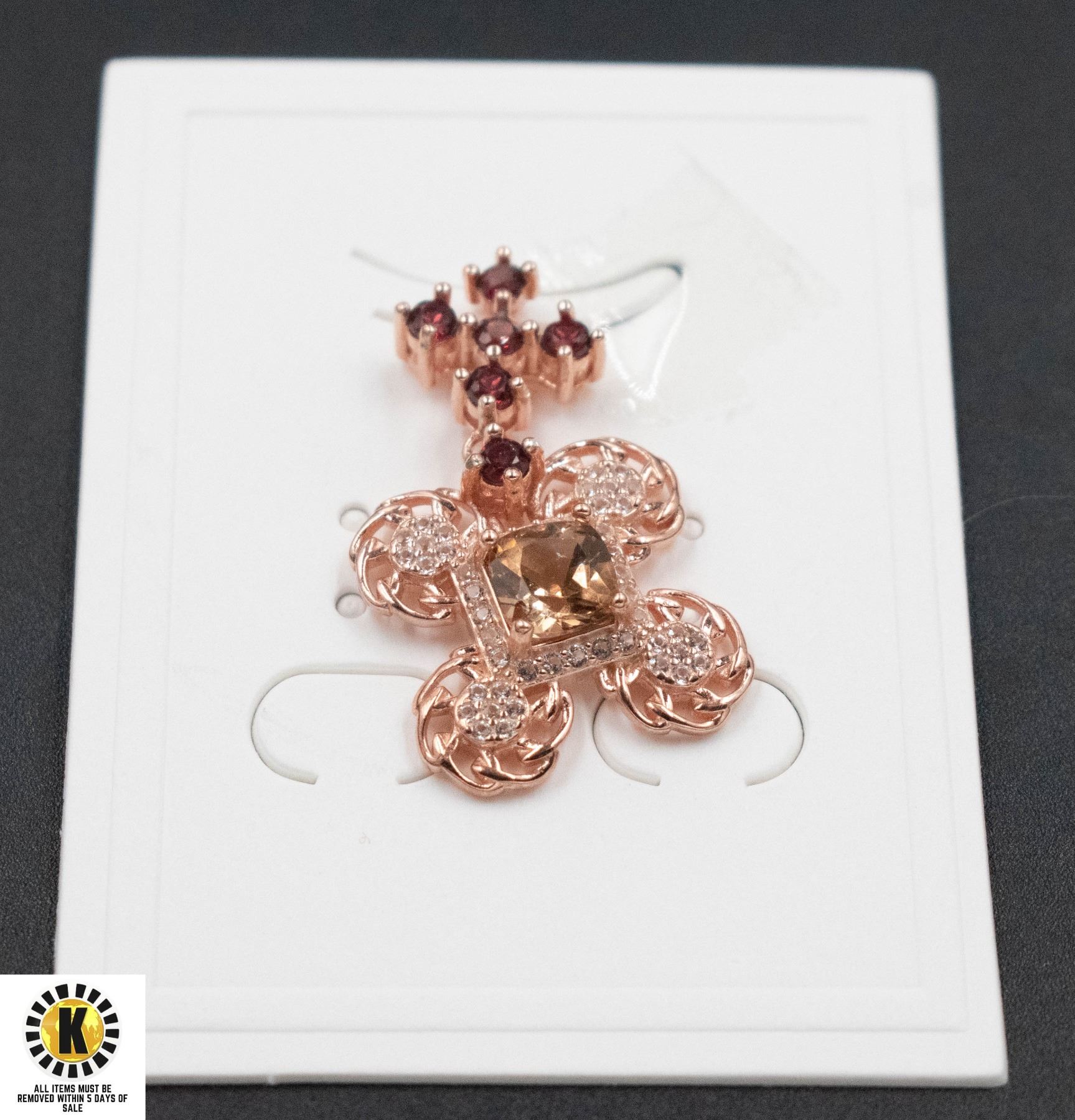 .925 STERLING SILVER /UNTREATED /RED GARNET & CZ/JD 17.3 X 28MM