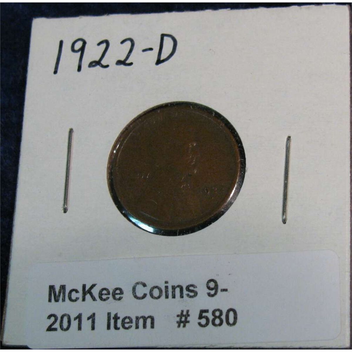 580. 1922 D Lincoln Cent. G-4. Small obverse scratch.