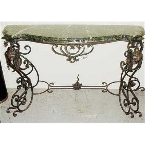 <tr><td>Title:580 19th Century Iron Console Table Marble Top</td></tr>