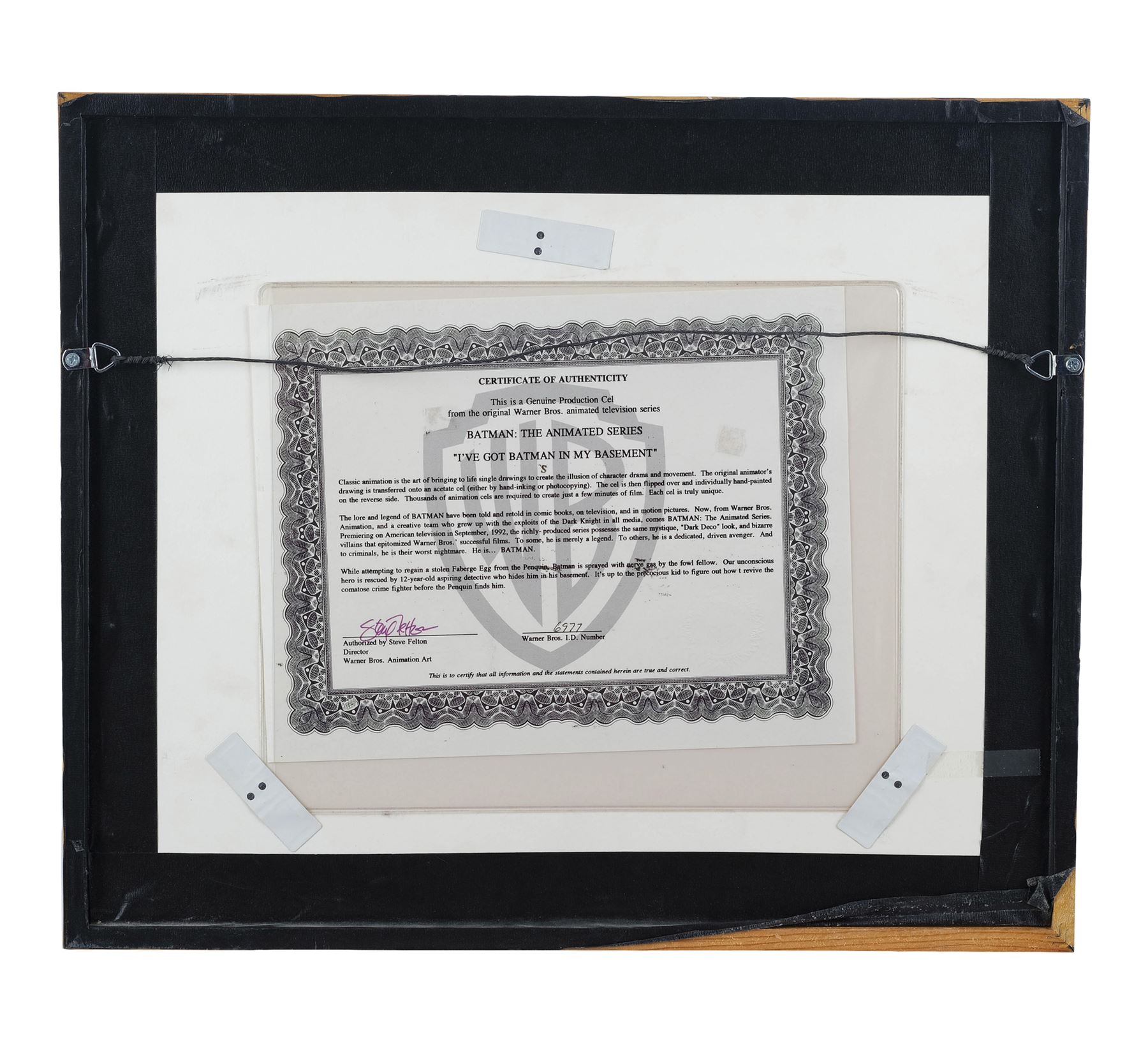 Additional Provenance: A Certification of Authenticity from Warner Bros.