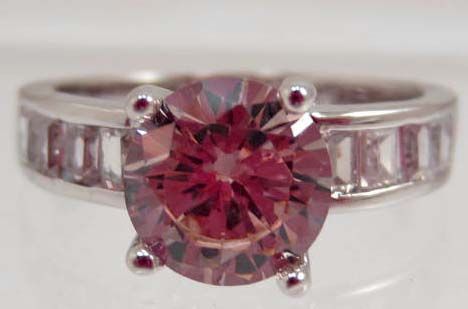 5803 - WHITE GOLD PLATED PINK SAPPHIRE & TOPAZ RING SIZE 8