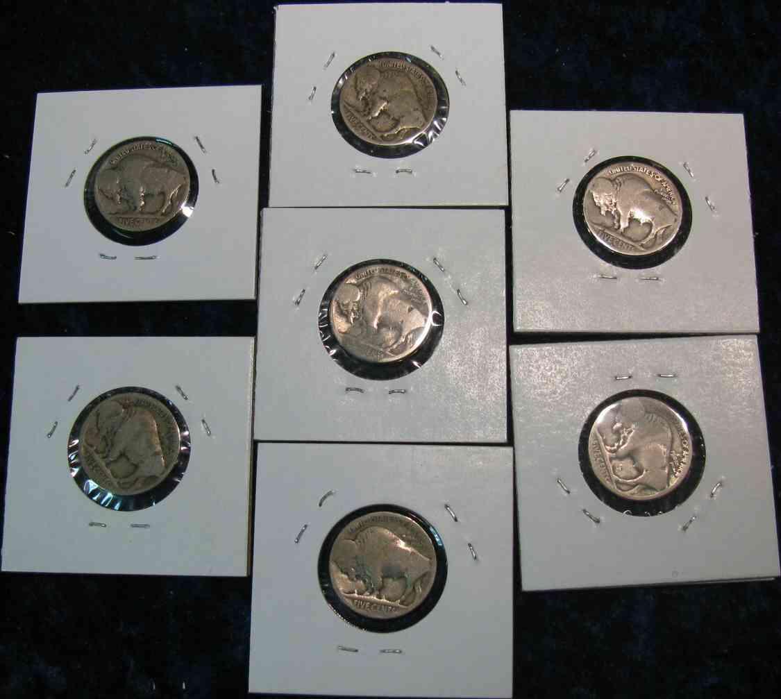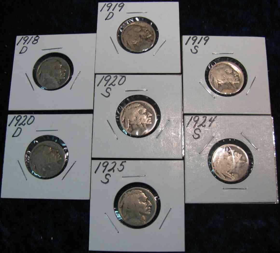 581. 1918D, 19D, S, 20D, S, 24S, & 25S Buffalo Nickels. Restored dates. G-4 Redbook is $70.00