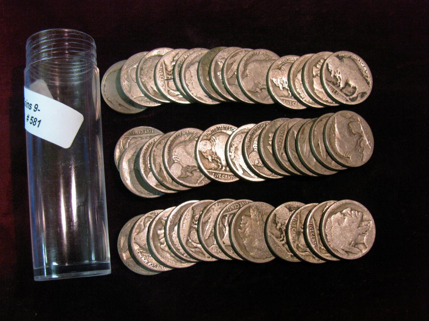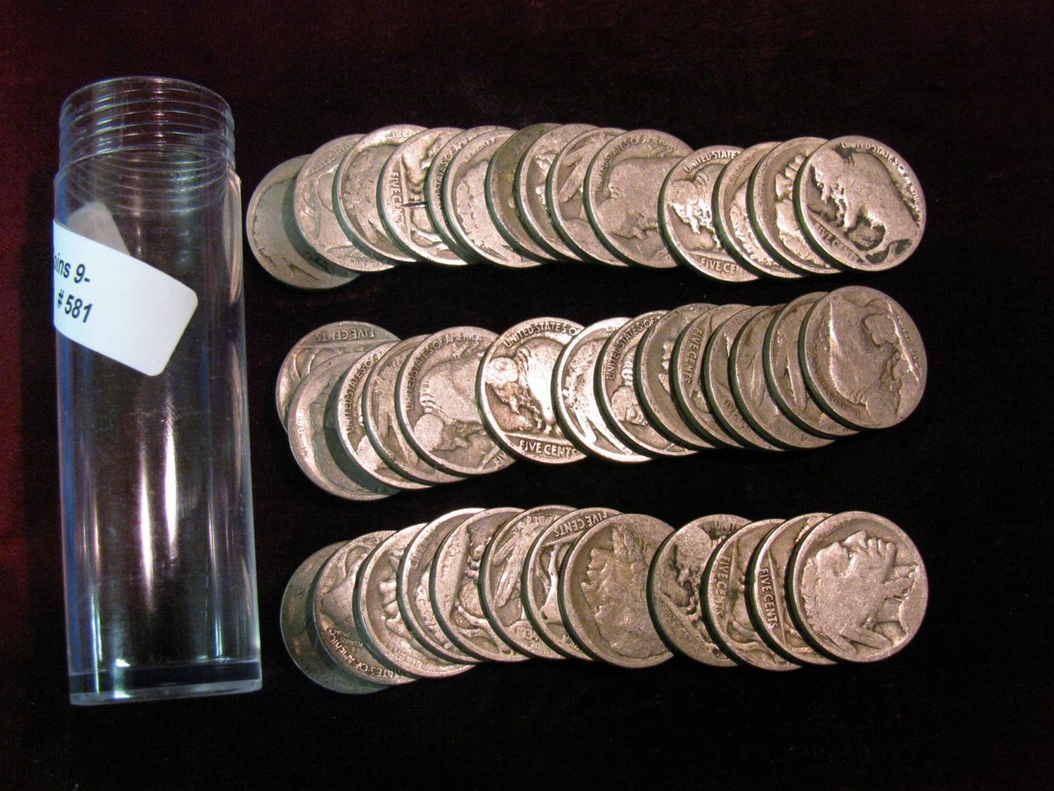 581. Roll of (40) Circulated Old Buffalo Nickels with Indian Heads. In a plastic tube.