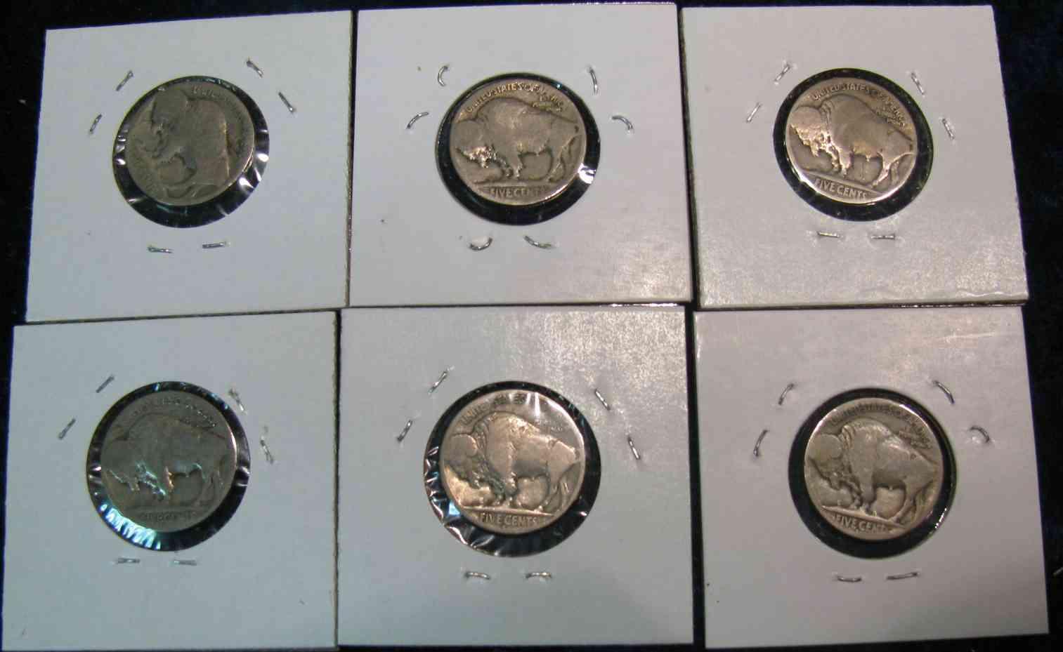 582. 1917D, 18D, 19D, 20D, S, & 25S Buffalo Nickels. Restored dates. G-4 Redbook is $63.00
