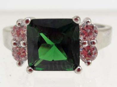 5826- WHITE  GOLD PLATED EMERALD & TOPAZ RING SIZE 8