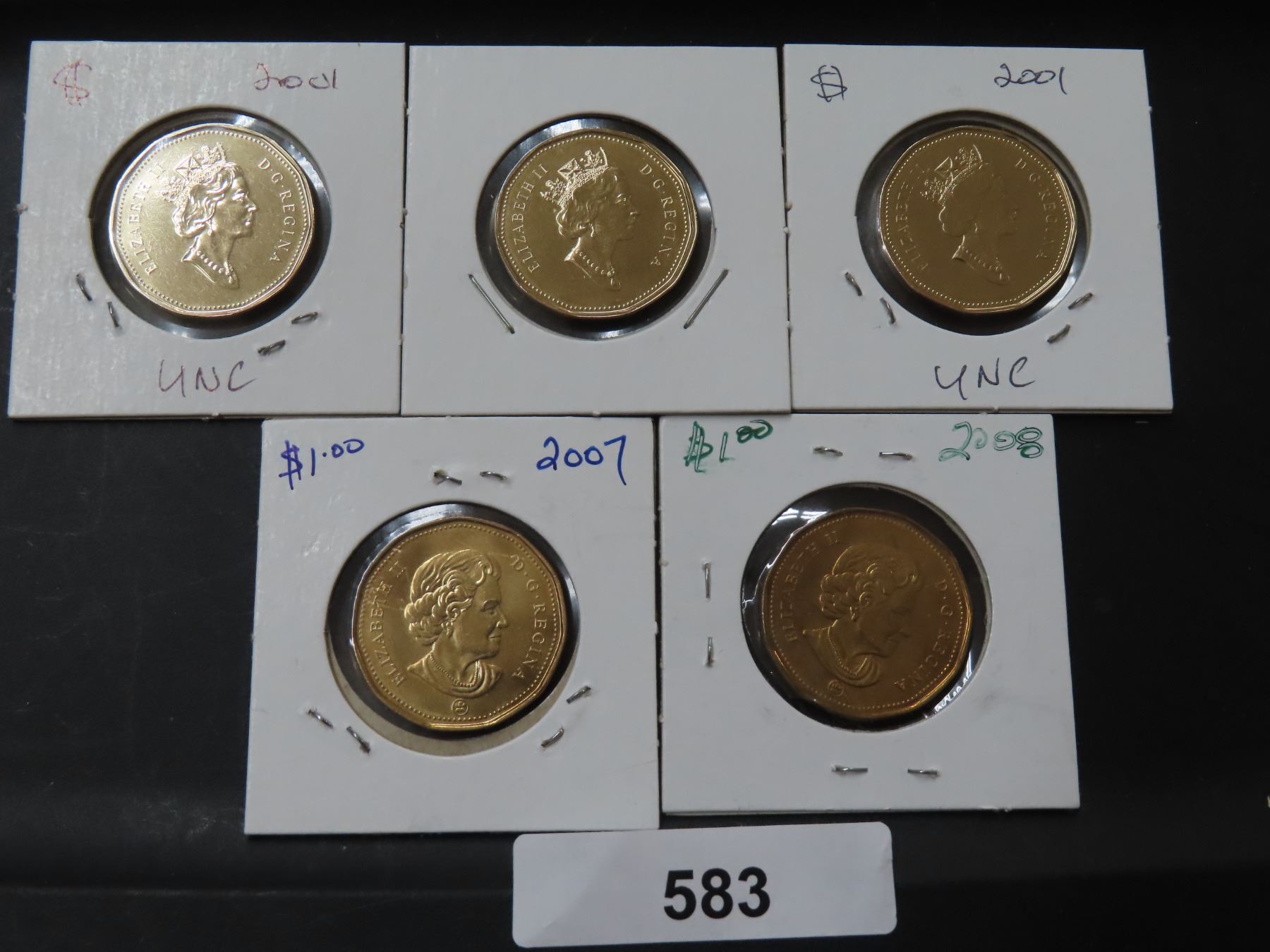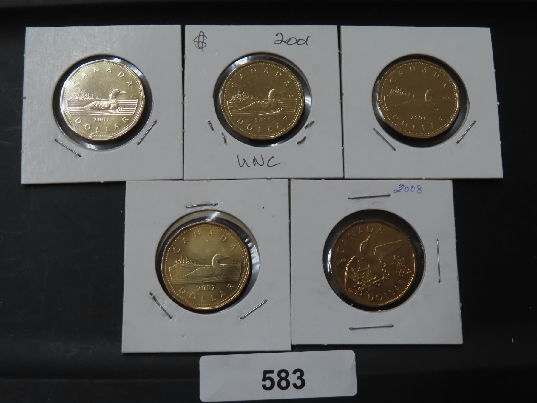 583 5 – CDN LOONIES 3-2001,1-07,1-08 ALL UNC