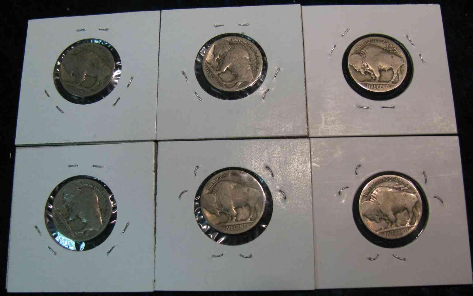 584. 1916S, 17D, 18D, 19S, & (2) 20D Buffalo Nickels. Restored dates.