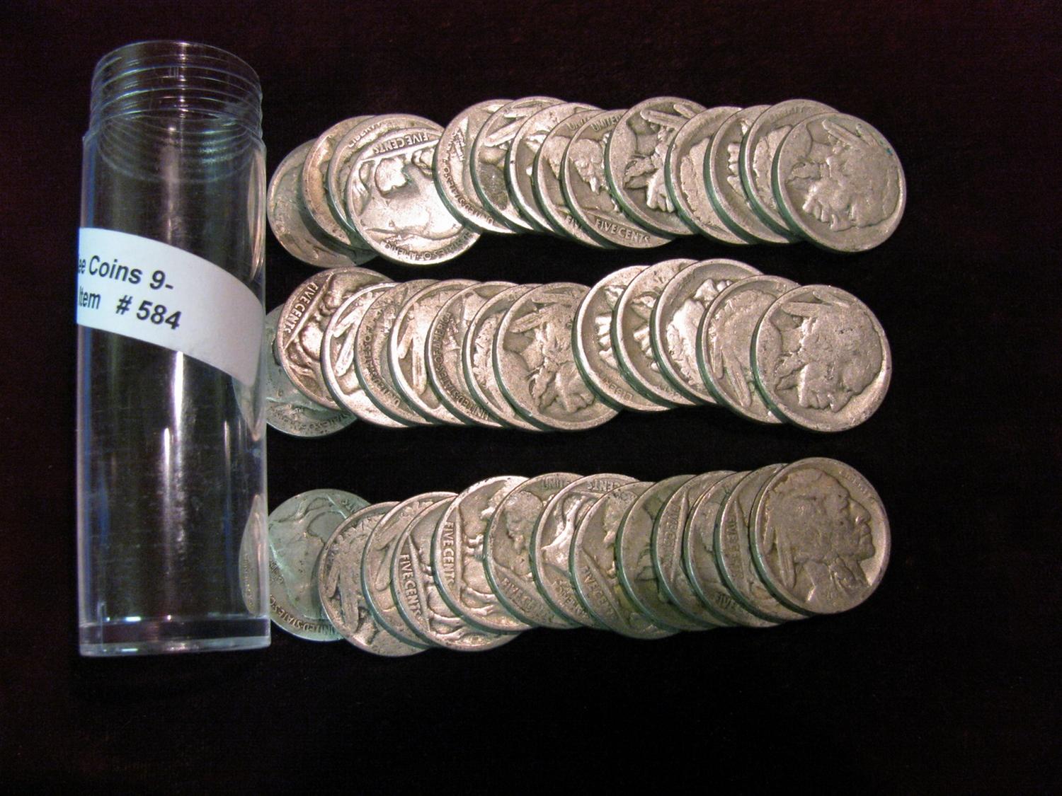 584. Roll of (40) Circulated Old Buffalo Nickels with Indian Heads. In a plastic tube.