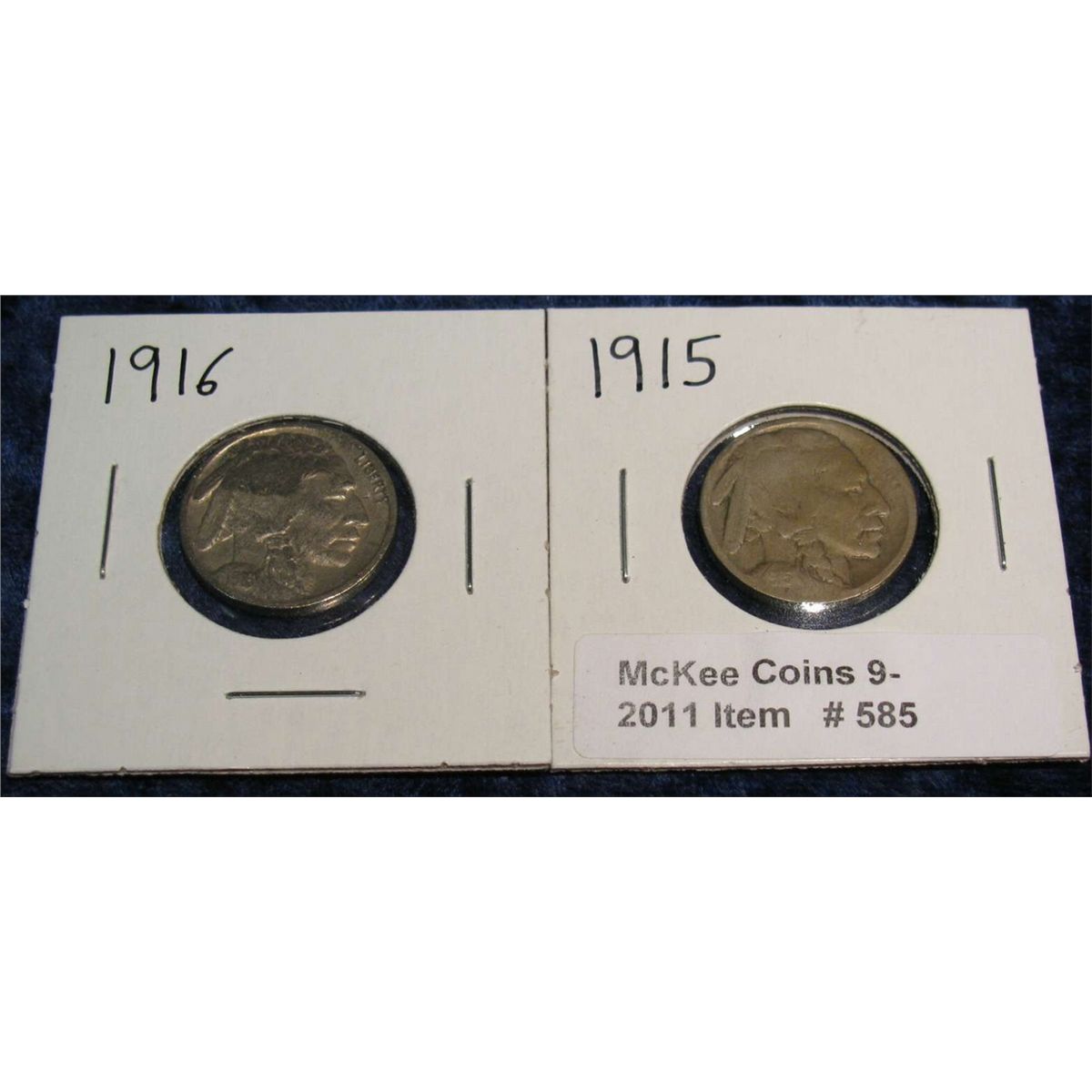 585. 1915 P & 16 P Buffalo Nickels. Circ.