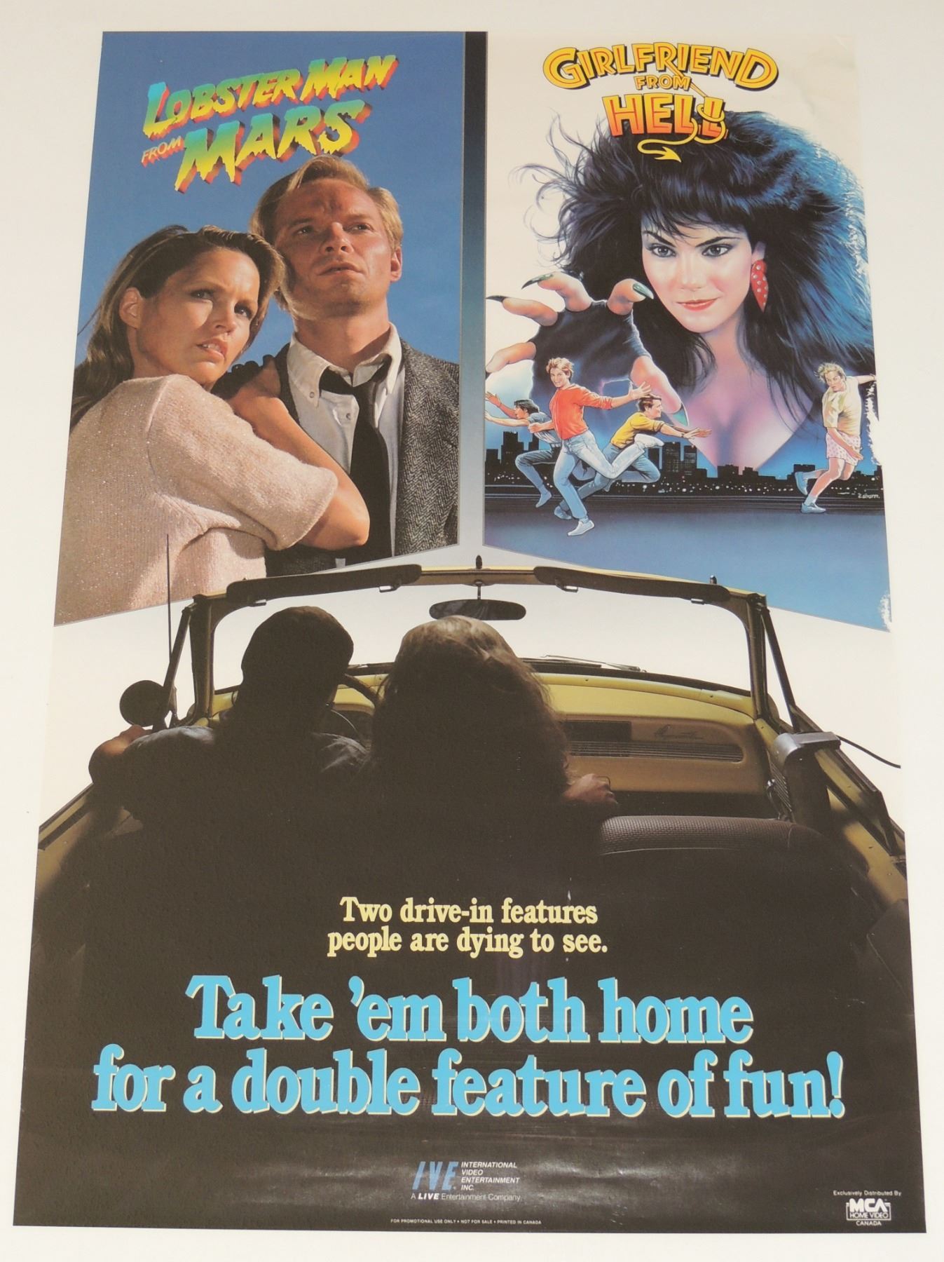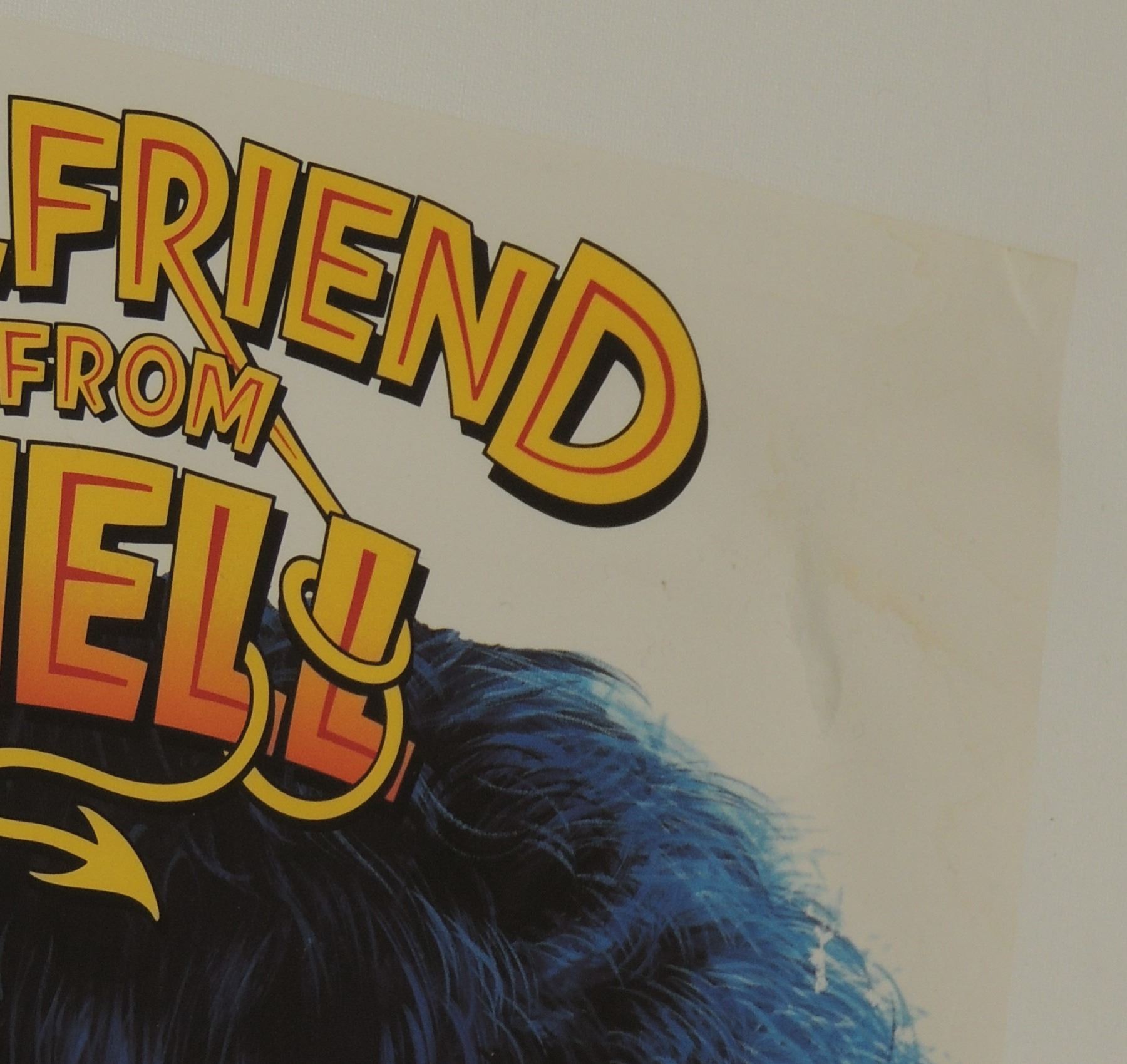 GIRLFRIEND FROM HELL 39X25 INCHES IN SIZE WORN CONDITION ON ONE SIDE MOVIE POSTER HORROR MOVIE CULT CLASSIC FROM BUYOUT PURCHASE OF VHS STORE OLD STOCK