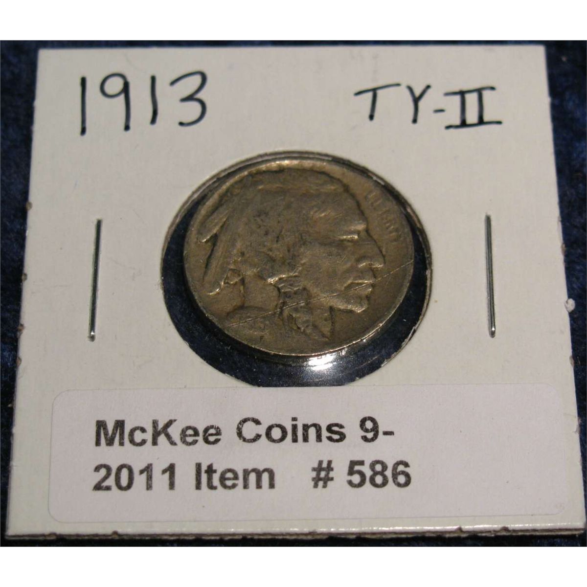 586. 1913 P Type 2 Buffalo Nickel. F-12.