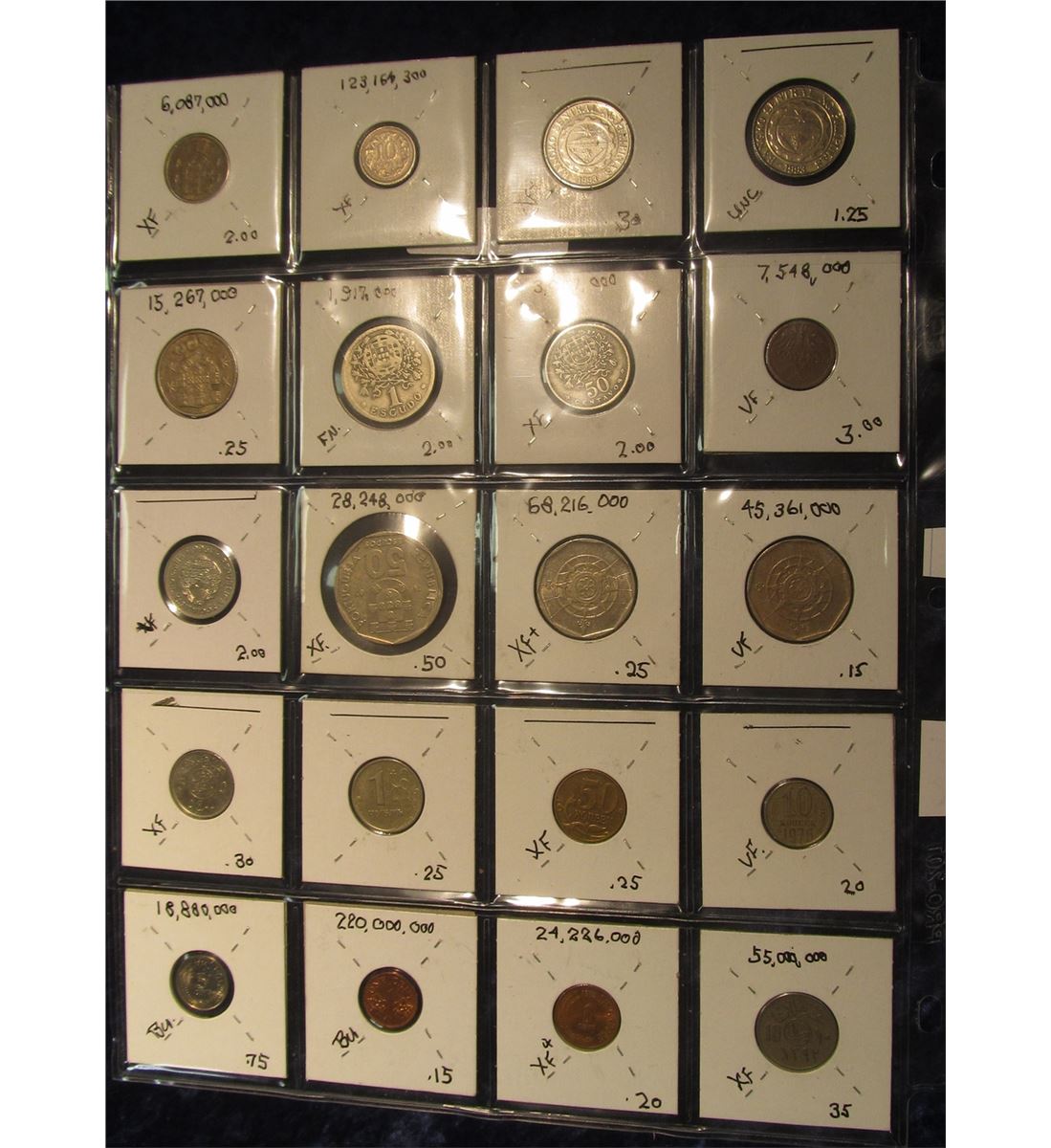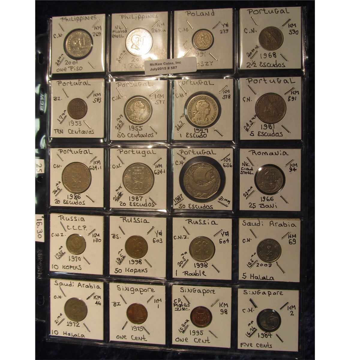 587. (20) World Coins in Plastic page, all identified and in 2" x 2" holders. Includes: Philippines, Poland, Portugal, Romania, Russia, Saudi Arabia, & Singapore. KM Catalog Value $16.30.