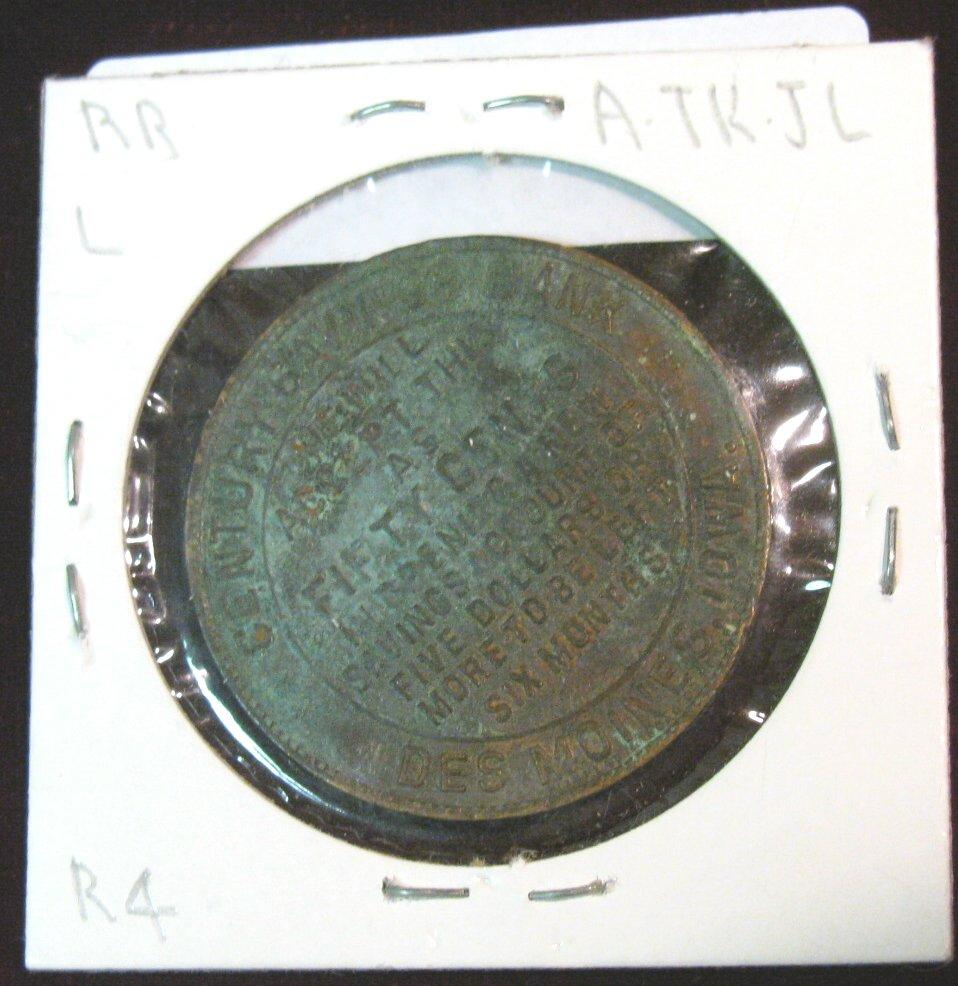 587. Century Savings Bank 50c Token. Des Moines, Ia.
