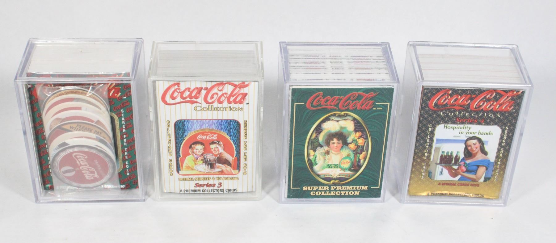 INCLUDING SERIES 2 AND 3 SUPER PREMIUM SET ETC IN FOUR PROTECTIVE PLASTIC CASES INCLUDES BONUS COCA COLA POGS COCA-COLA