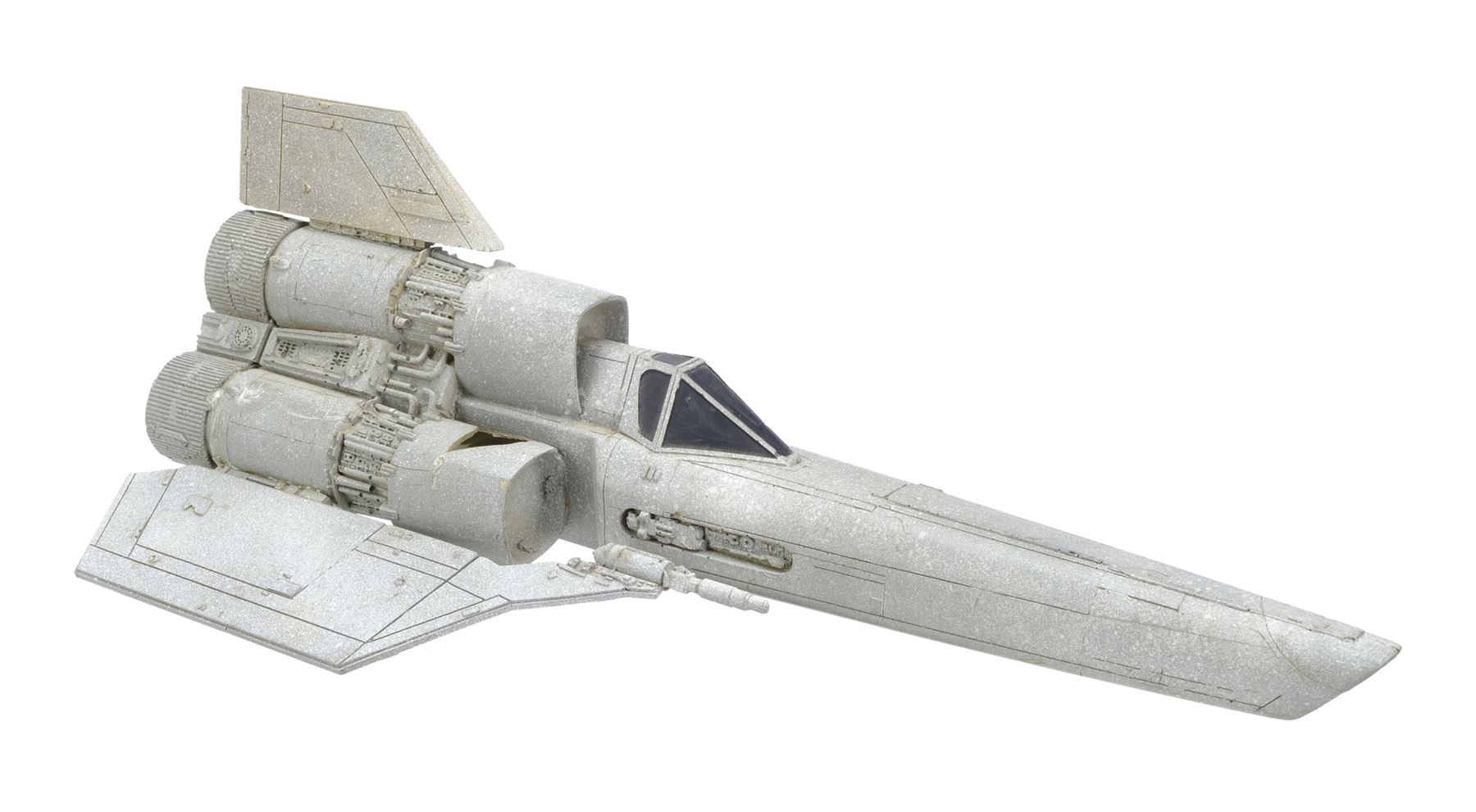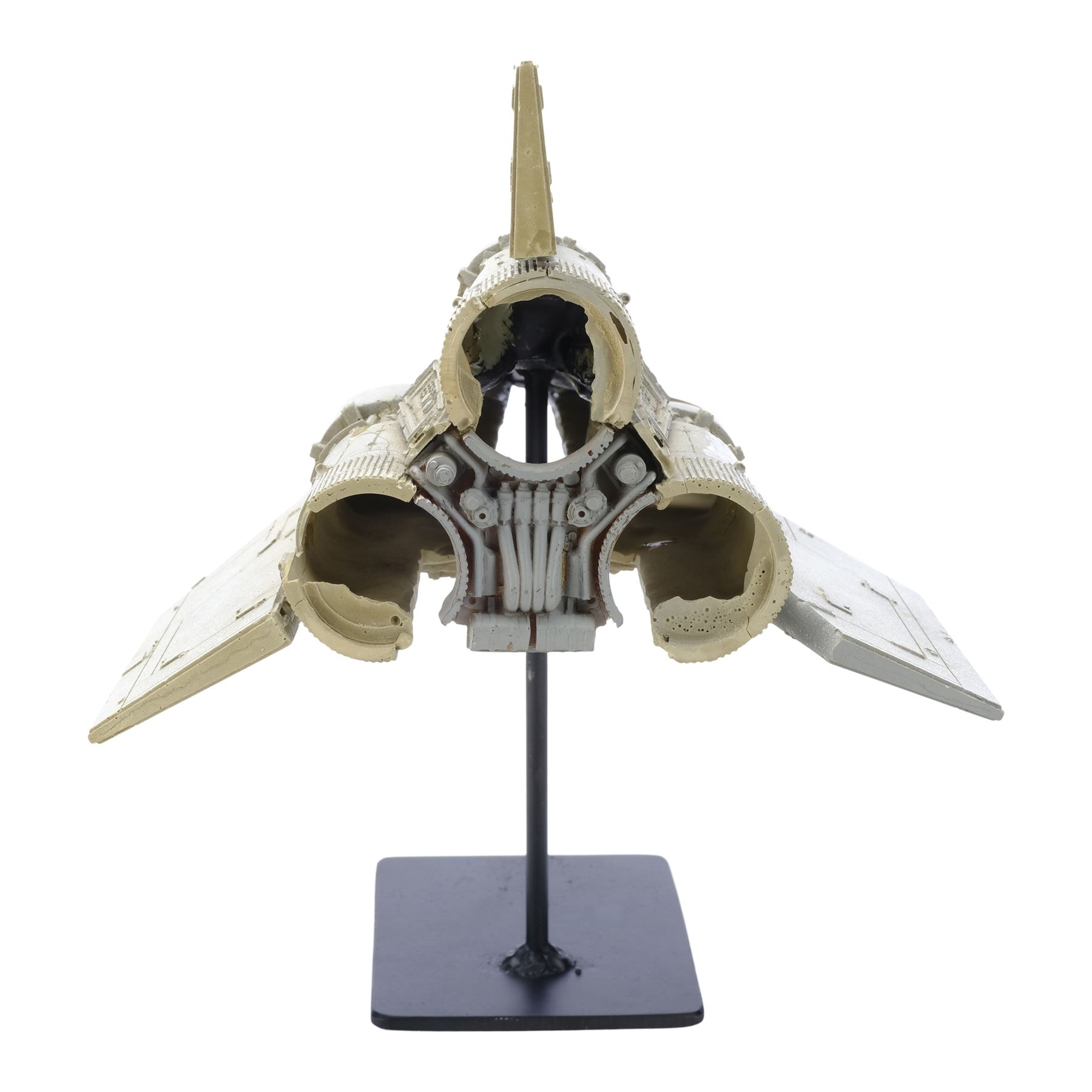 This Viper miniature was created by MCA-57, a special effects group consisting largely of Star Wars crew members who would later form Industrial Light & Magic (ILM), for use in testing pyrotechnic effects for the series. Following the tests, the pieces were kept and reassembled.