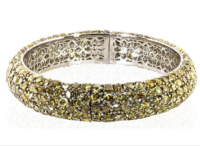 FANCY DIAMOND IN 18K Yellow Gold ROUND BANGLE/Diamond Count 1:272/Diamond Count 1 TCW:59.13/Diamond Color & Clarity:FANCY/SI1-SI3/Diamond Count 2:/Diamond Count 2 TCW:/Diamond Color & Clarity:/Diamond Count 3:/Diamond Count 3 TCW:/Gemstone Count 1:/Gemstone Count 1 TCW:/Dimension:/Metal Type:18k Gold Yellow Gold /Weight Gram:56.55/Weight Gram:/Gross Weight:68.38