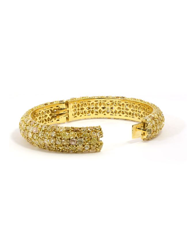 FANCY DIAMOND IN 18K Yellow Gold ROUND BANGLE/Diamond Count 1:272/Diamond Count 1 TCW:59.13/Diamond Color & Clarity:FANCY/SI1-SI3/Diamond Count 2:/Diamond Count 2 TCW:/Diamond Color & Clarity:/Diamond Count 3:/Diamond Count 3 TCW:/Gemstone Count 1:/Gemstone Count 1 TCW:/Dimension:/Metal Type:18k Gold Yellow Gold /Weight Gram:56.55/Weight Gram:/Gross Weight:68.38