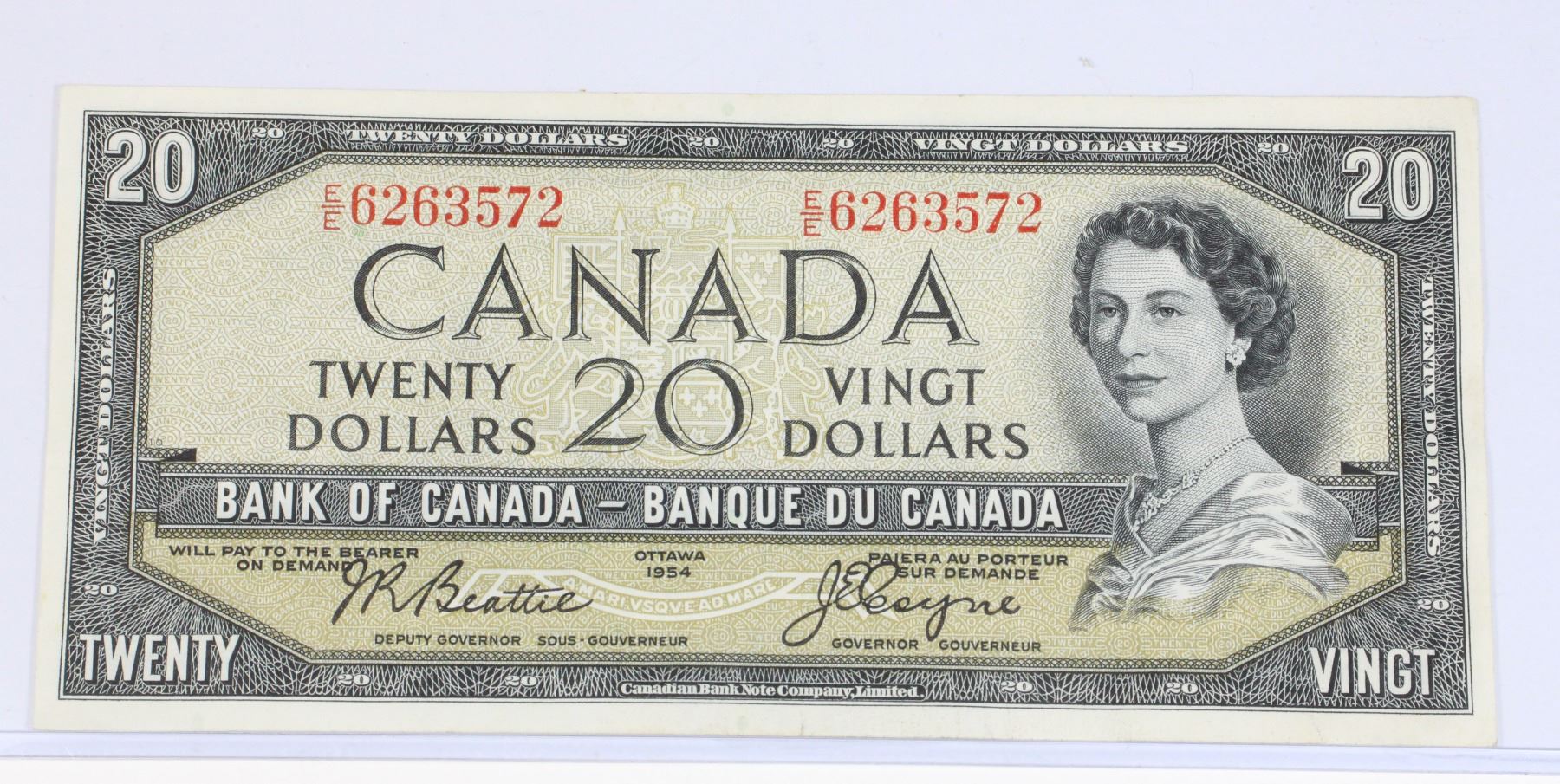 #59 1954 CANADA $20 TWENTY DOLLAR BILL NOTE PAPER