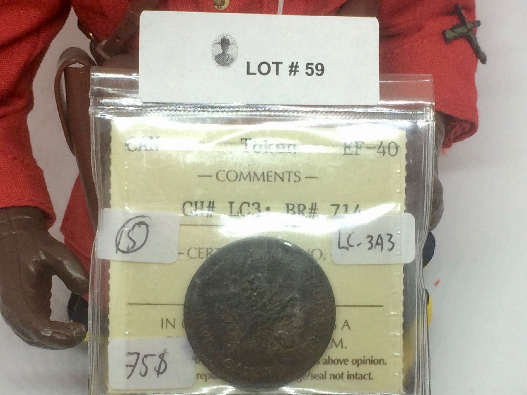 (59)-Estate Lot: Un sous token, Lower Canada, ICCS EF-40, LC-3A3, Breton 714, Graded by ICCS EF-40.