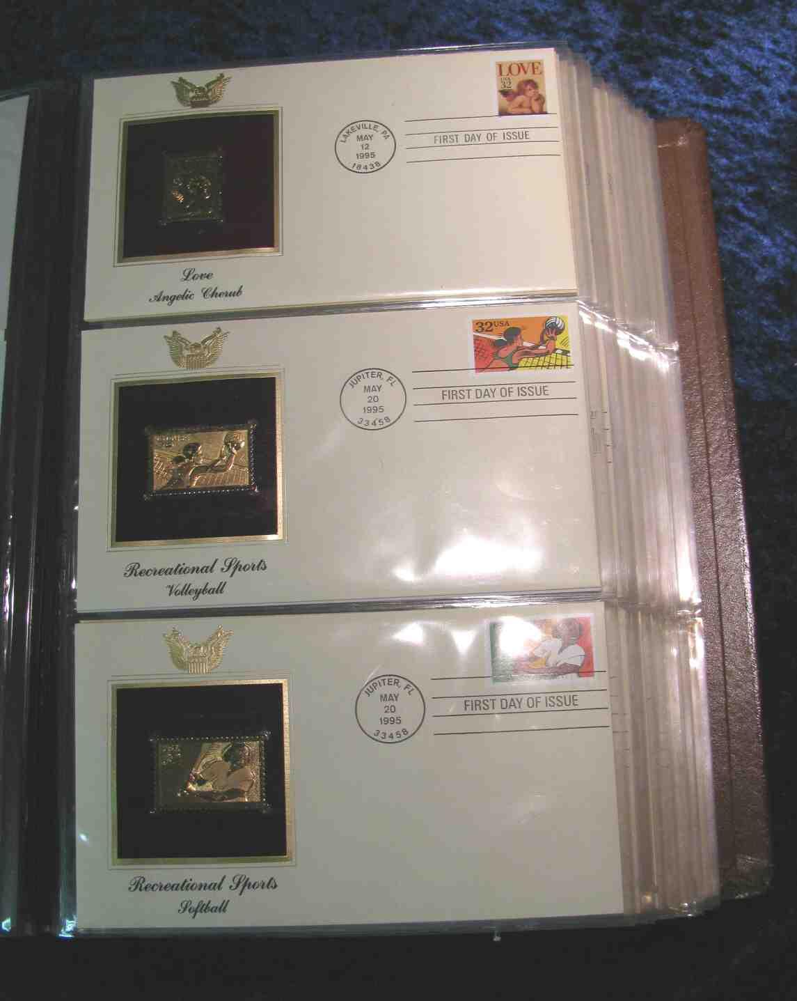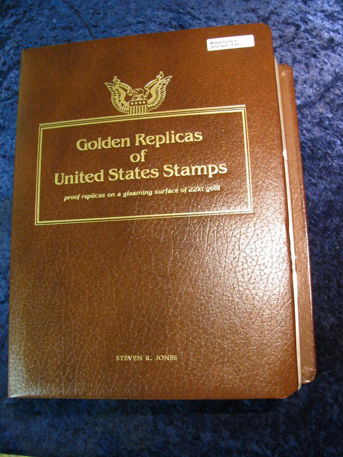 59. Large Simulated Leather Bound Album titled "Golden Replicas of U.S. Stamps" Proof replicas on a gleaming surface of 22K gold. Features 75 different covers which, originally sold for $7.25 each. Total value $543.75. Includes the attractive Civil War Issues.