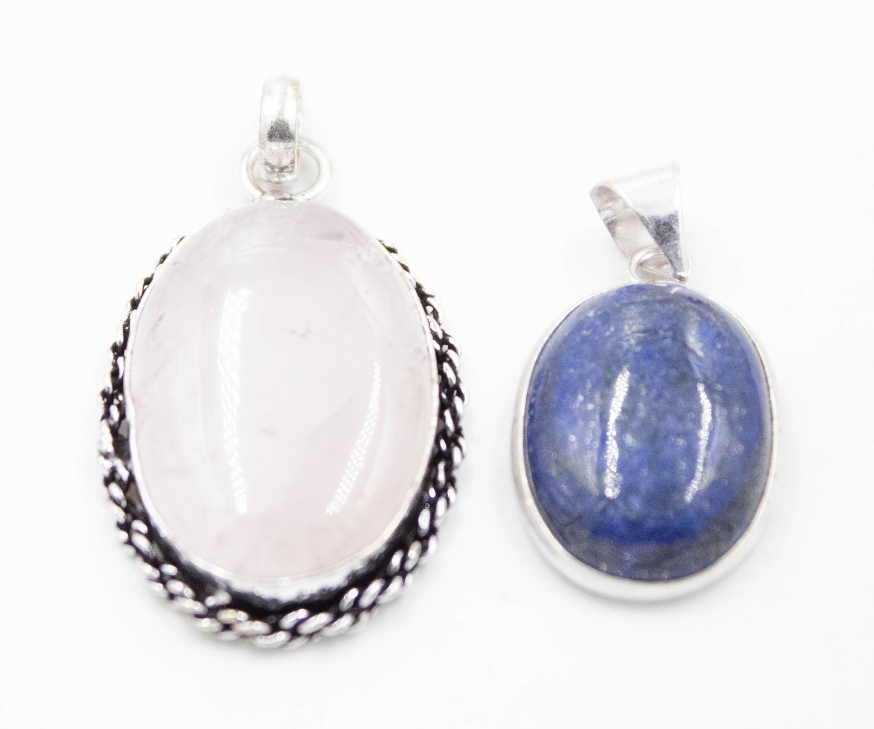 #59-NATURAL ROSE QZ & LAPIS LAZULI PENDANT