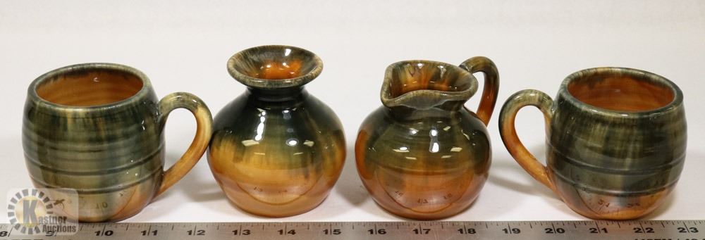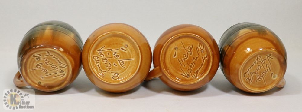 59) SET OF 4 CERAMIC POTS SIGNED INEKE VICTORIA BC