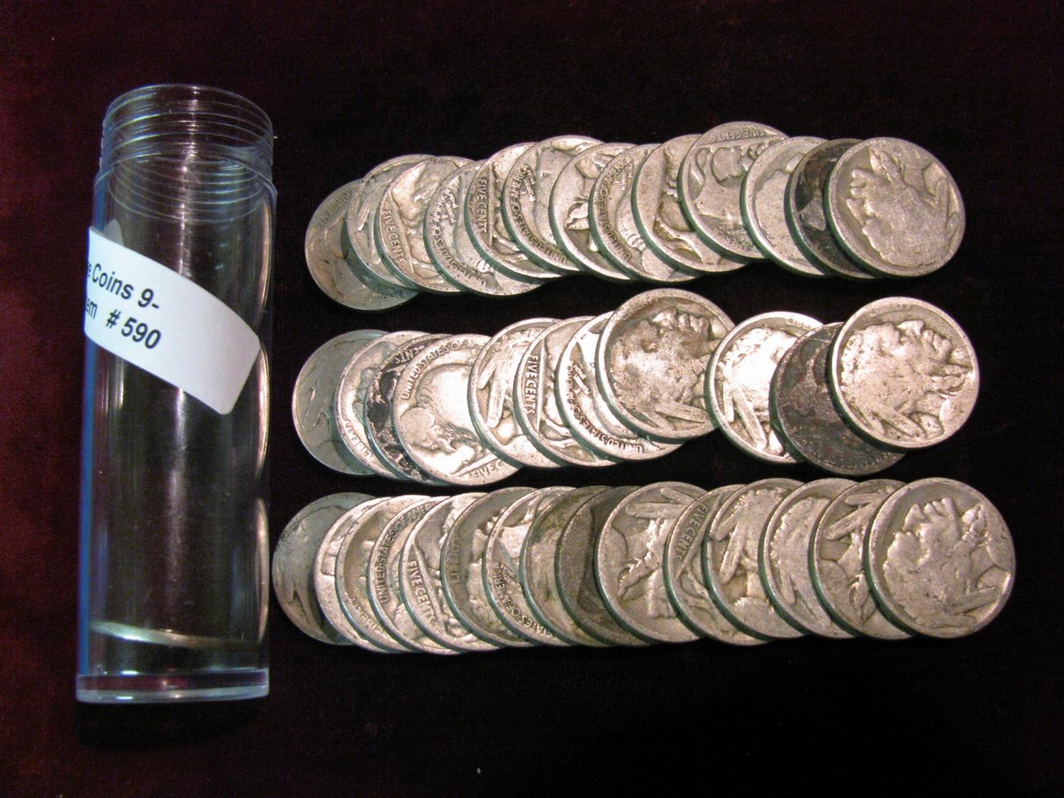590. Roll of (40) Circulated Old Buffalo Nickels with Indian Heads. In a plastic tube.