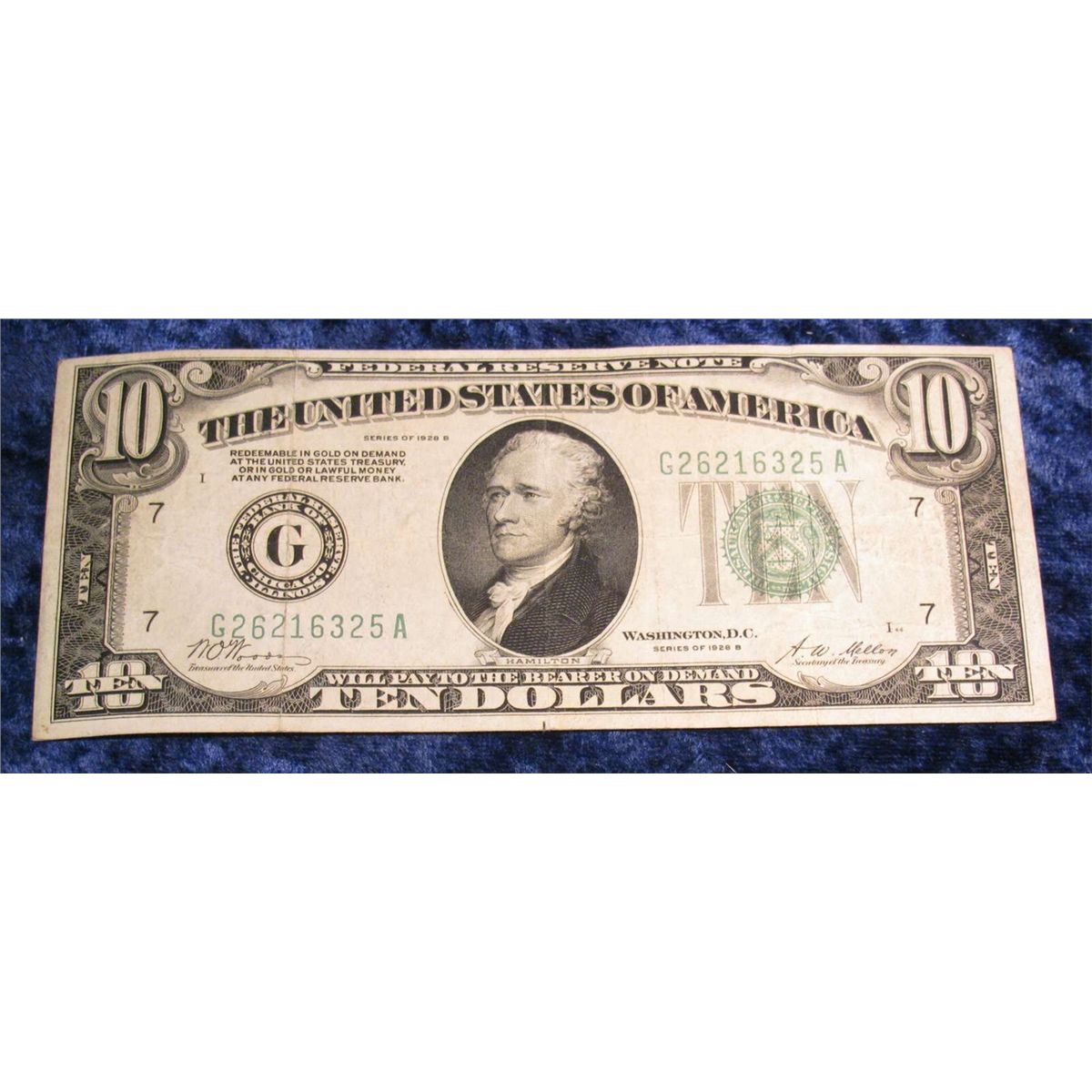 591. Series 1928 B $10 Federal Reserve Note. "Redeemable in Gold on demand…" F-12.