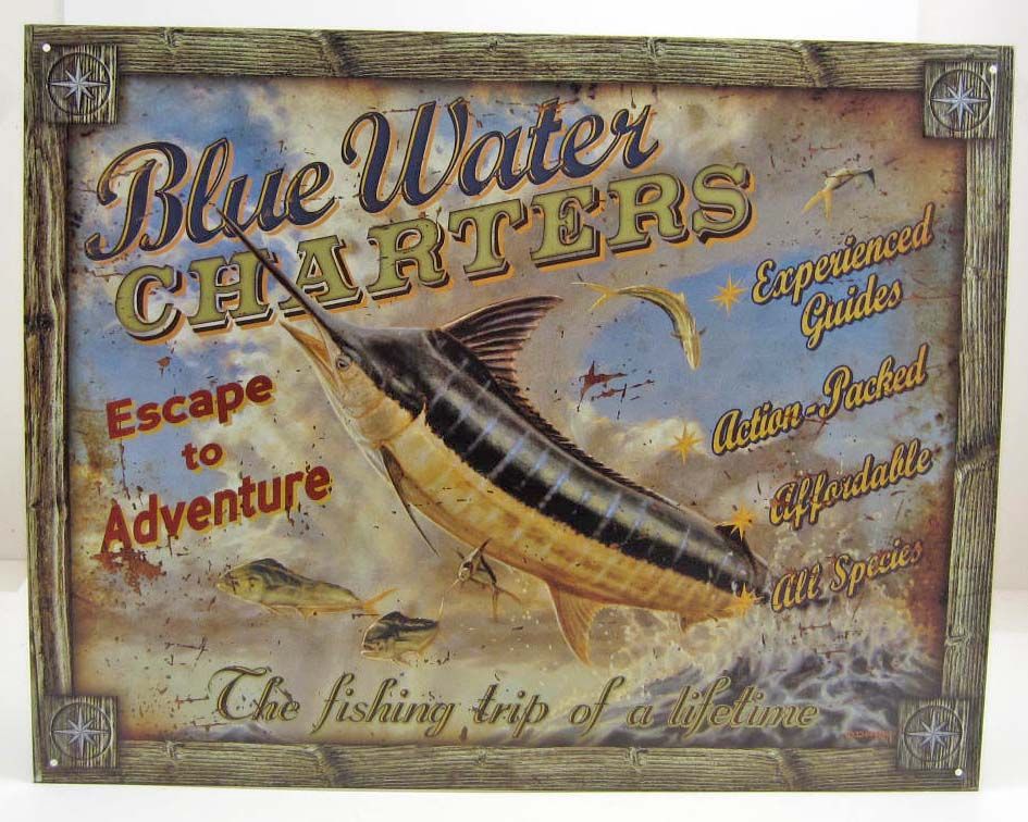 5923 - BLUE WATER CHARTERS FISHING TIN SIGN