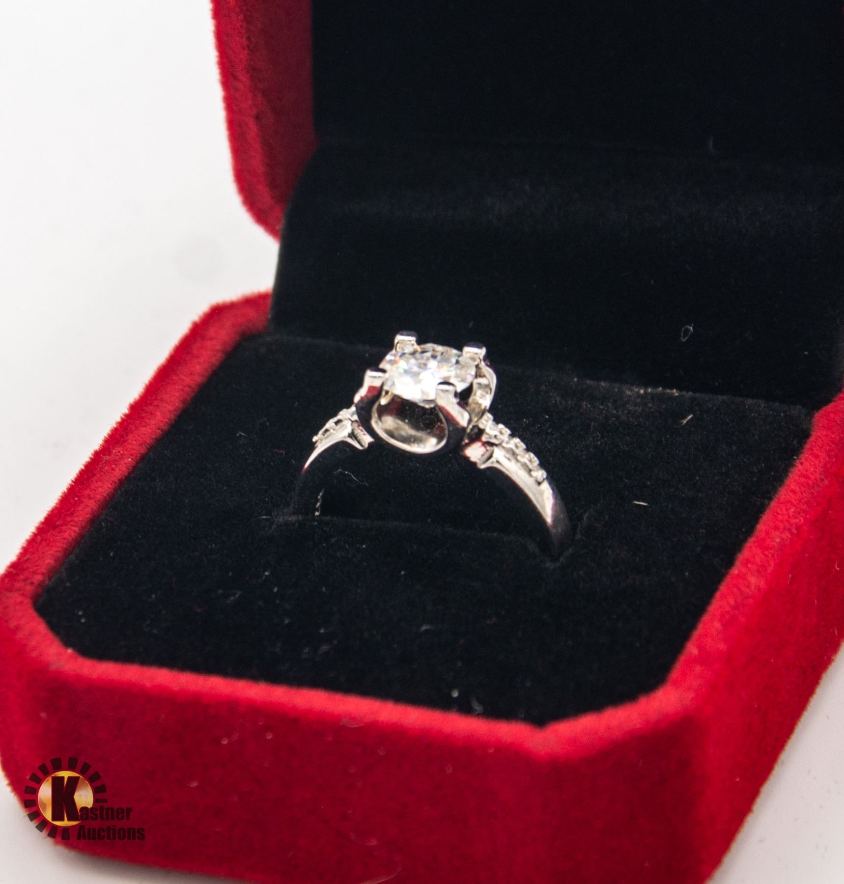 MOISSANITE STONE VVS D COLOR SET IN CENTER IN 925 SILVER RING SIZE ADJUSTABLE RETAIL VALUE $1450.00 **ALL ITEMS MUST BE REMOVED BY 5PM SATURDAY, SEPTEMBER 14th 2024. ALL REMAINING ITEMS WILL BE SUBJECT TO A $6.00 PER DAY STORAGE CHARGE. ANY ITEMS REMAINING AFTER MONDAY, SEPTEMBER 30TH 2024 WILL BE CONSIDERED FORFEITED. NO REFUNDS WILL BE ISSUED FOR FORFEITED ITEMS. TO SCHEDULE A PICK UP APPOINTMENT CLICK HERE