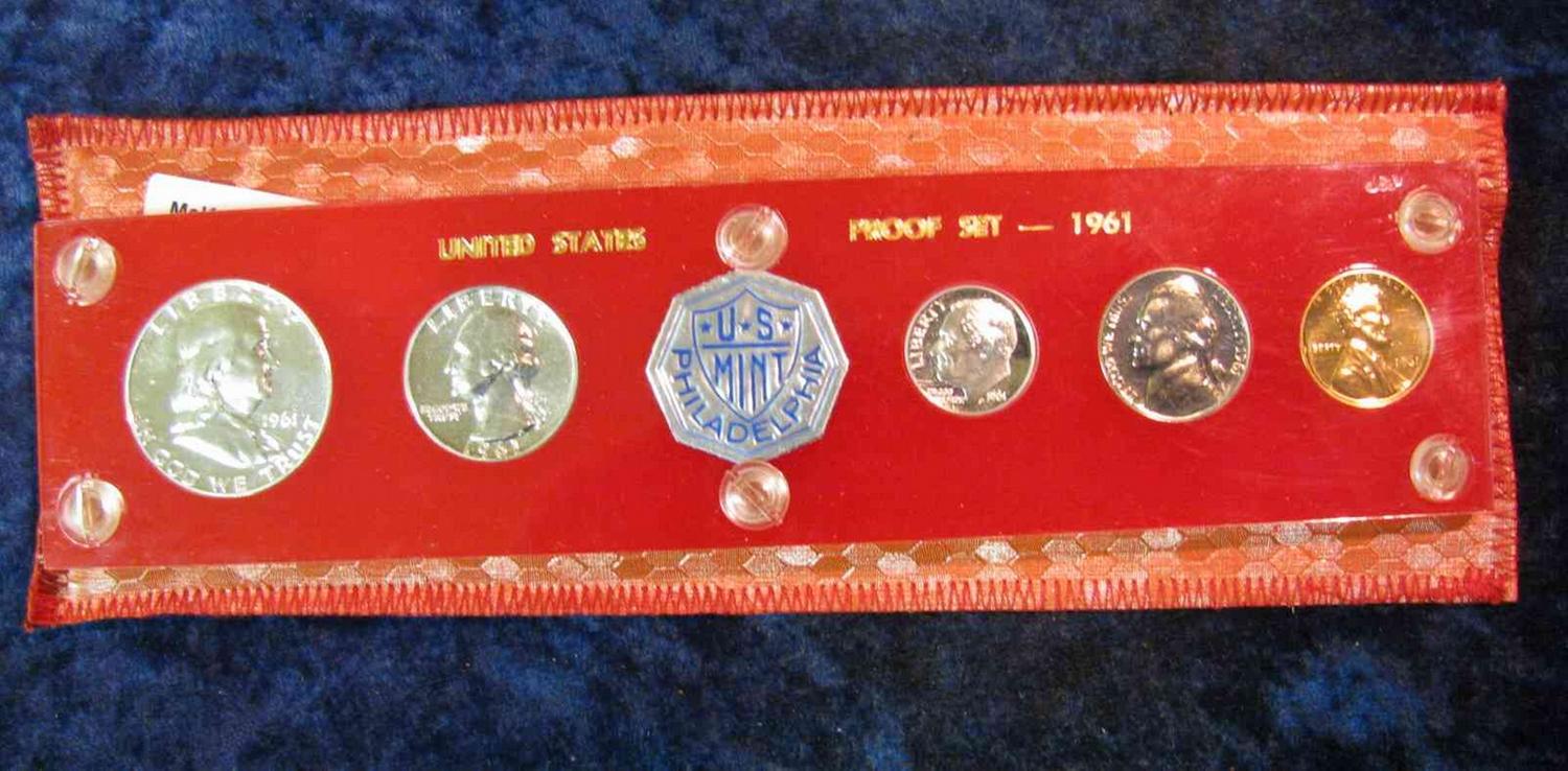 594. 1961 U.S. Proof Set in Capital holder. Complete with Deep Mirror Cameo Roosevelt Dime.