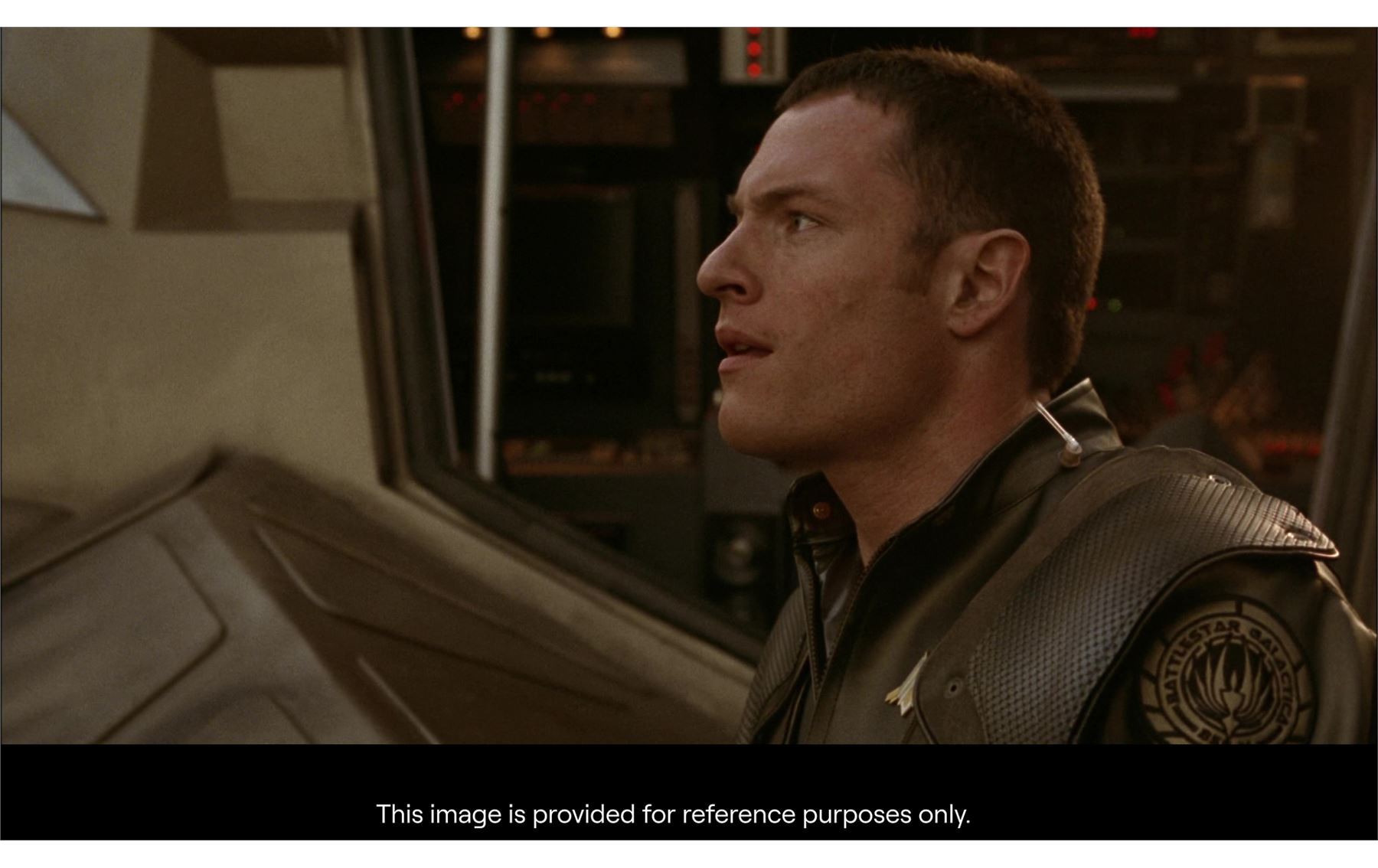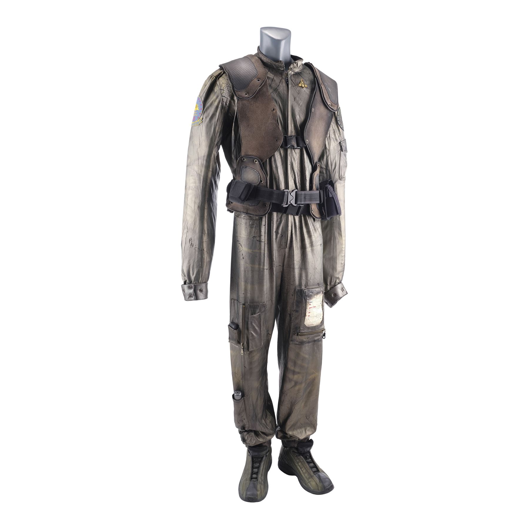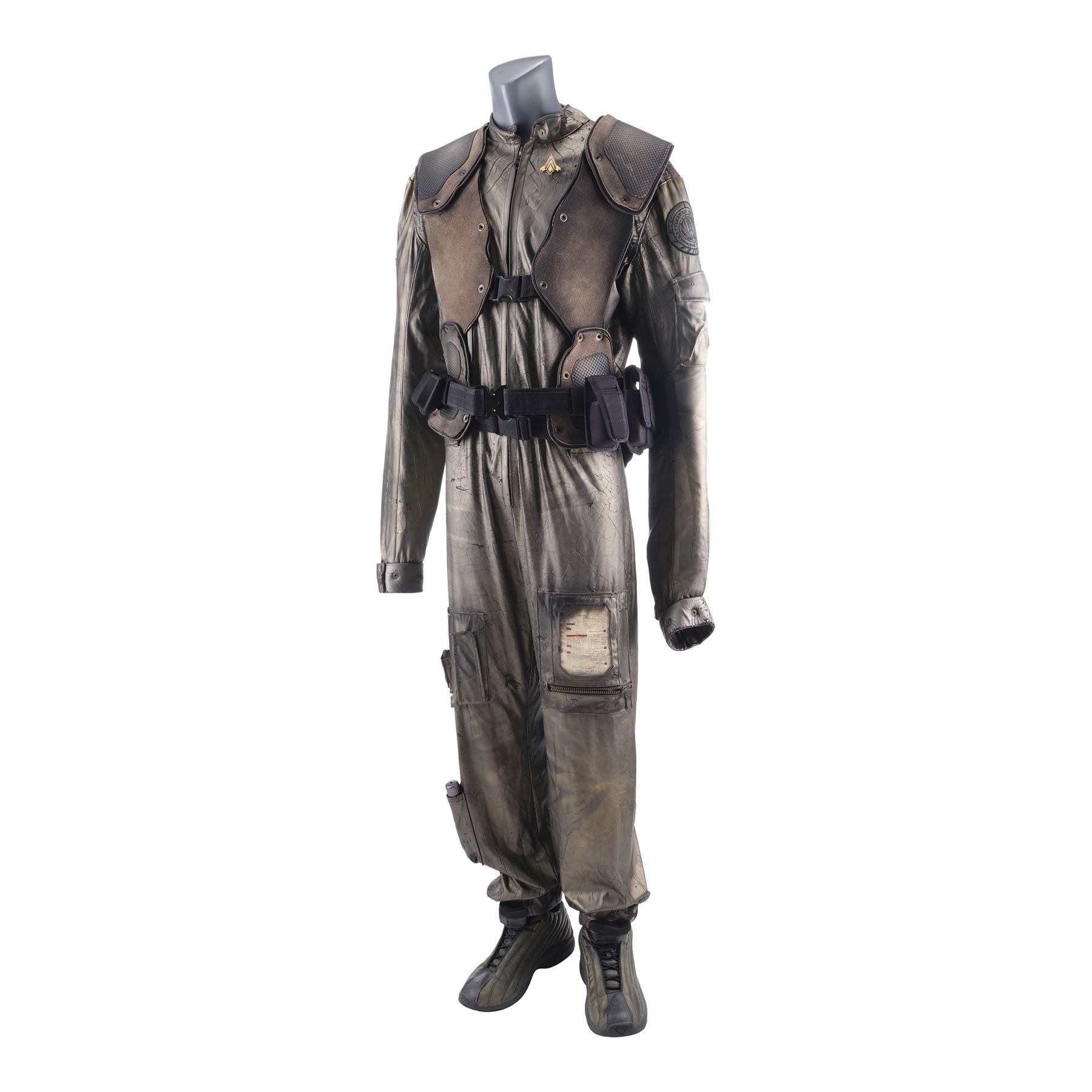 BATTLESTAR GALACTICA (2004-2009) - Raptor Flight Suit Costume - A Raptor flight suit costume from Ronald D. Moore's television series Battlestar Galactica. Colonial Fleet pilots wore standard-issue flight suits while operating Raptor transports.