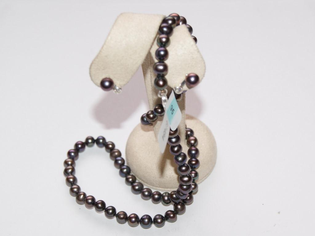 5MM Black Pearls & Matching Earrings Set Sold as One Money
