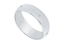 Symbol of commitment & togetherness this graceful ring have five brilliant-cut diamonds surrounded the band. Made in rich platinum with 5mm regular-fit half round wedding band & has a total weight (TDW) of 0.05 carat. This band thickness is about 1.5mm.