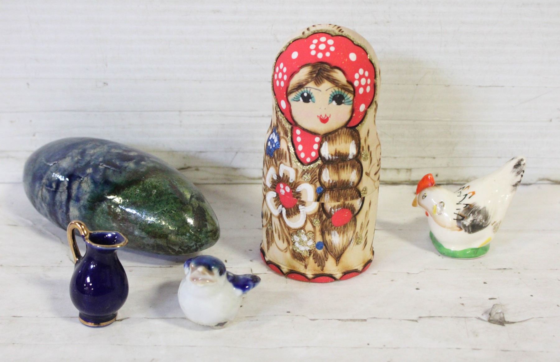 5PC STACKING DOLLS, RAKU POTTERY RATTLE, COTAGIRI