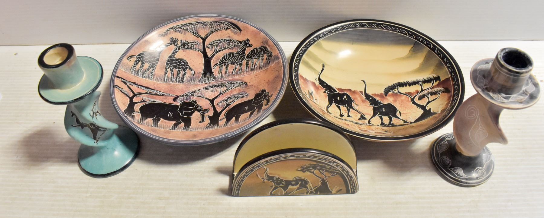 5PCS CARVED KENYA STONE BOWL & OTHER ITEMS