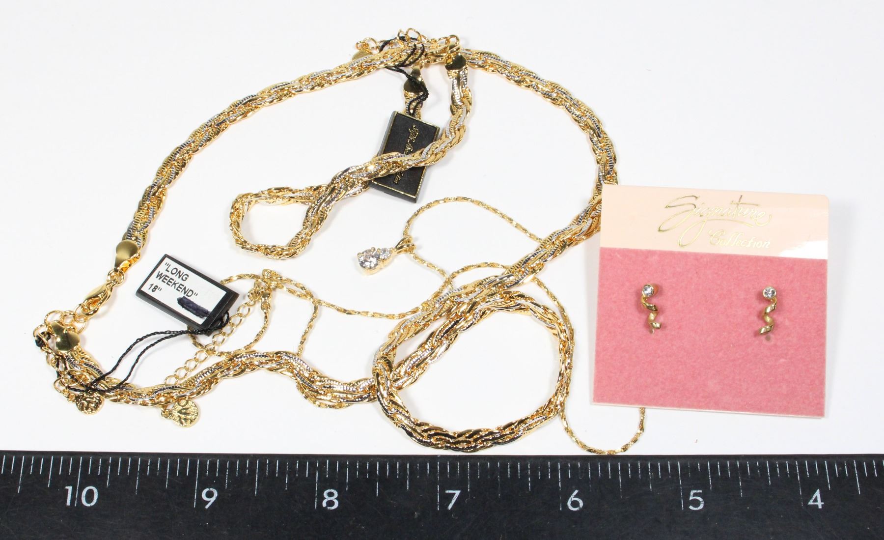 PRE-OWNED IN EXC. CONDITION. NECKLACES ARE 18" LONG, BRACELET IS 7" LONG, PIERCED EARRINGS