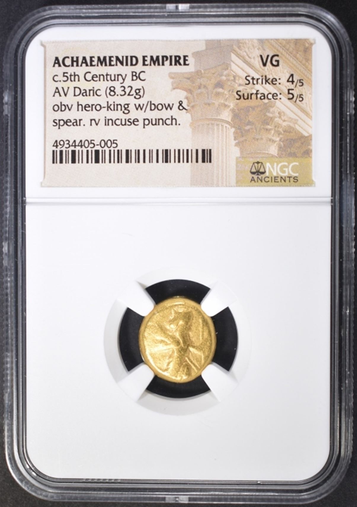 ACHAEMENID EMPIRE. OBV HERO-KING W/BOW & SPEAR RV INCUSE PUNCH. ESTIMATE $1250 - $1450.