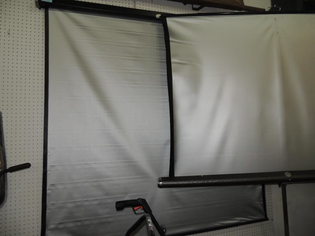 PROJECTION SCREEN WALL MOUNT, PULL DOWN SCREEN, ENTERTAINMENT, MOVIE TV PROJECTION, VINTAGE SCREEN AS SHOWN SEE PHOTO FOR MORE DETAILS.