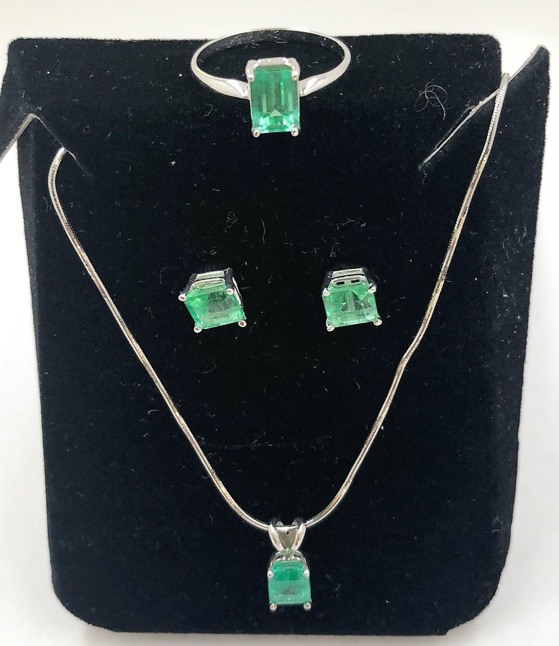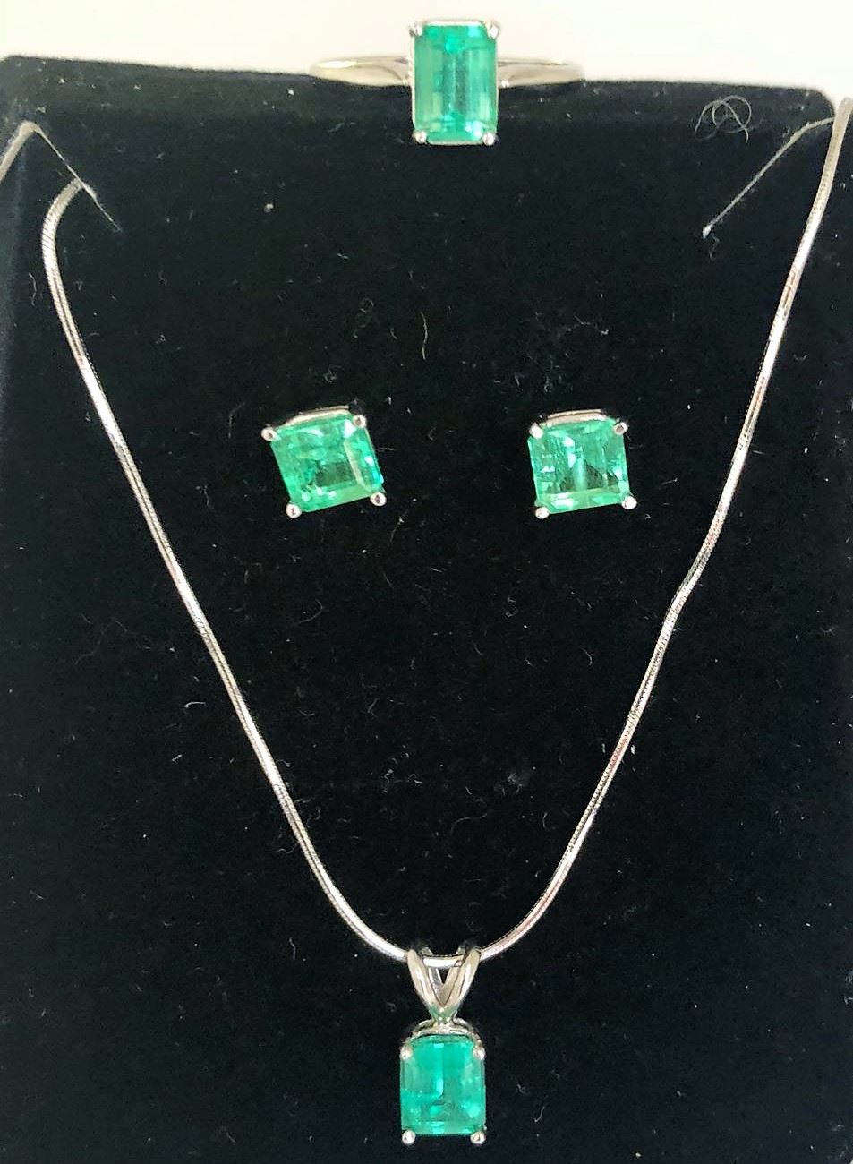 14K White Gold / 18 inches Chain / Natural Colombian Emerald 5ct About clean VS Quality