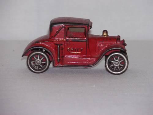 5" ARCADE PAINTED CAST IRON FIRE CHIEF COUPE RED W/ GOLD TRIM - MINOR PAINT WEAR;