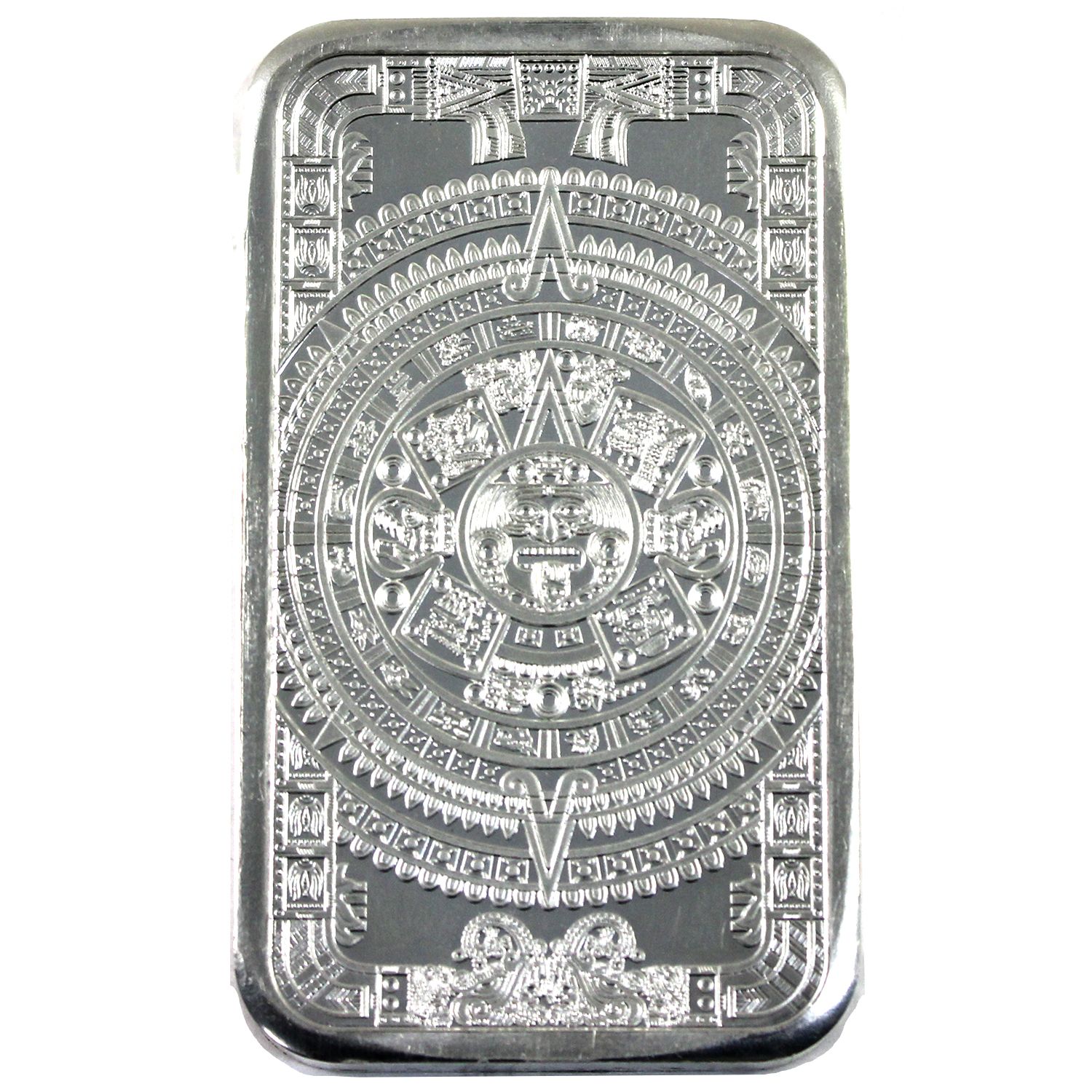5oz .999 Fine Silver Aztec Calendar Cuauhtemoc Rare Silver Bar. (Tax Exempt)