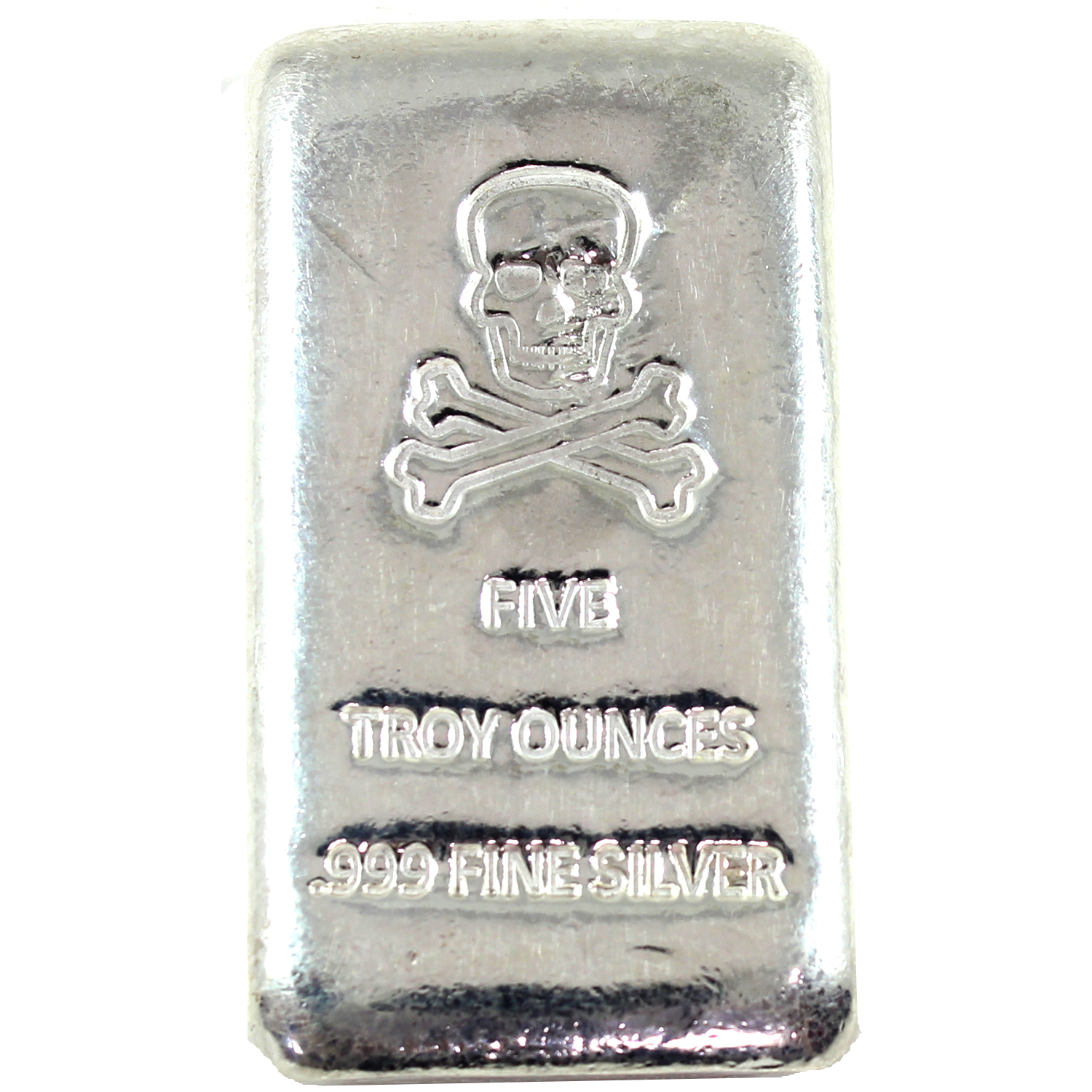 5oz Eagle Forge Mint Skull & Crossbones .999 Fine Silver Hand Poured Bar (Tax Exempt)