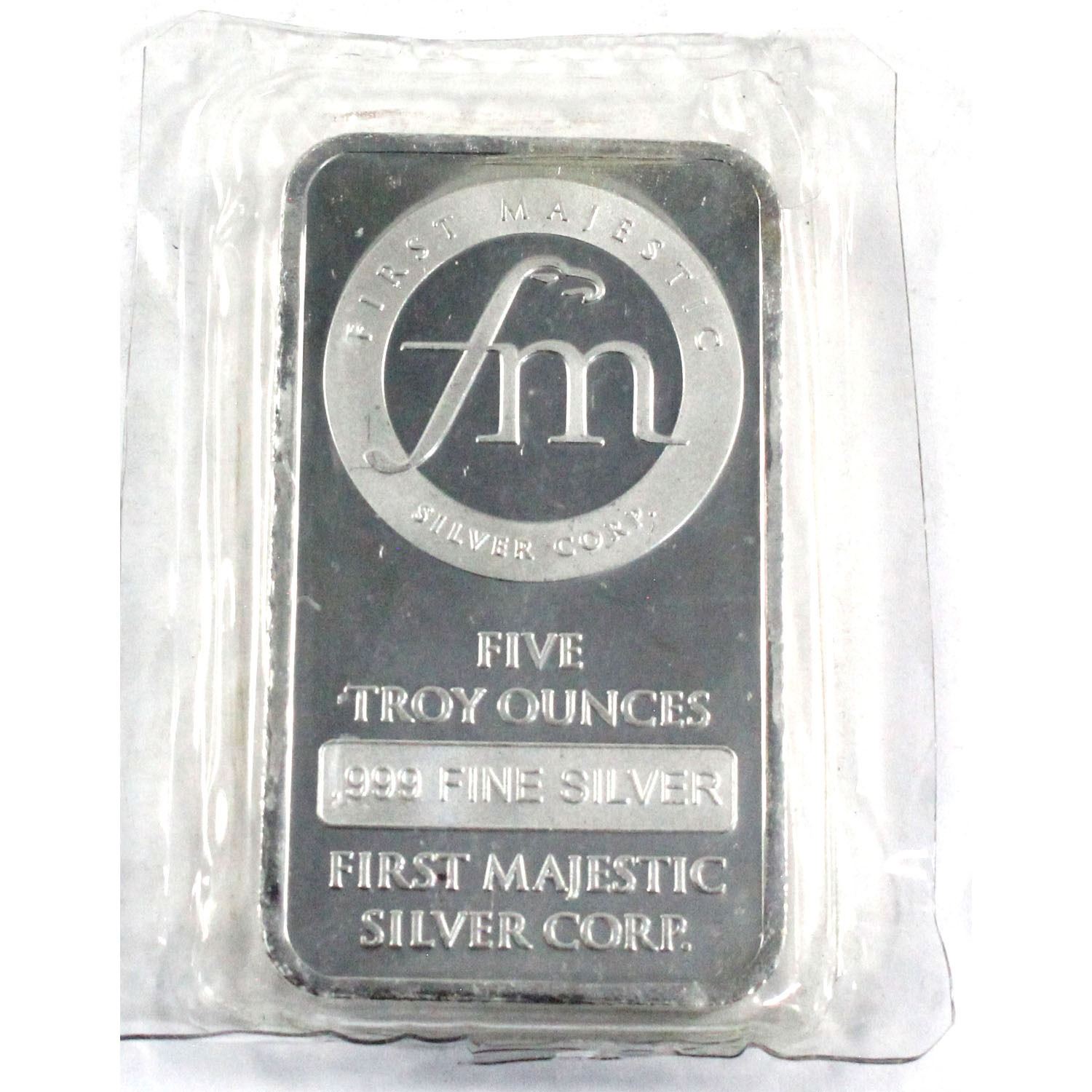 5oz First Majestic Silver Corp .999 Fine Silver Bar in Plastic (Not fully sealed). TAX Exempt