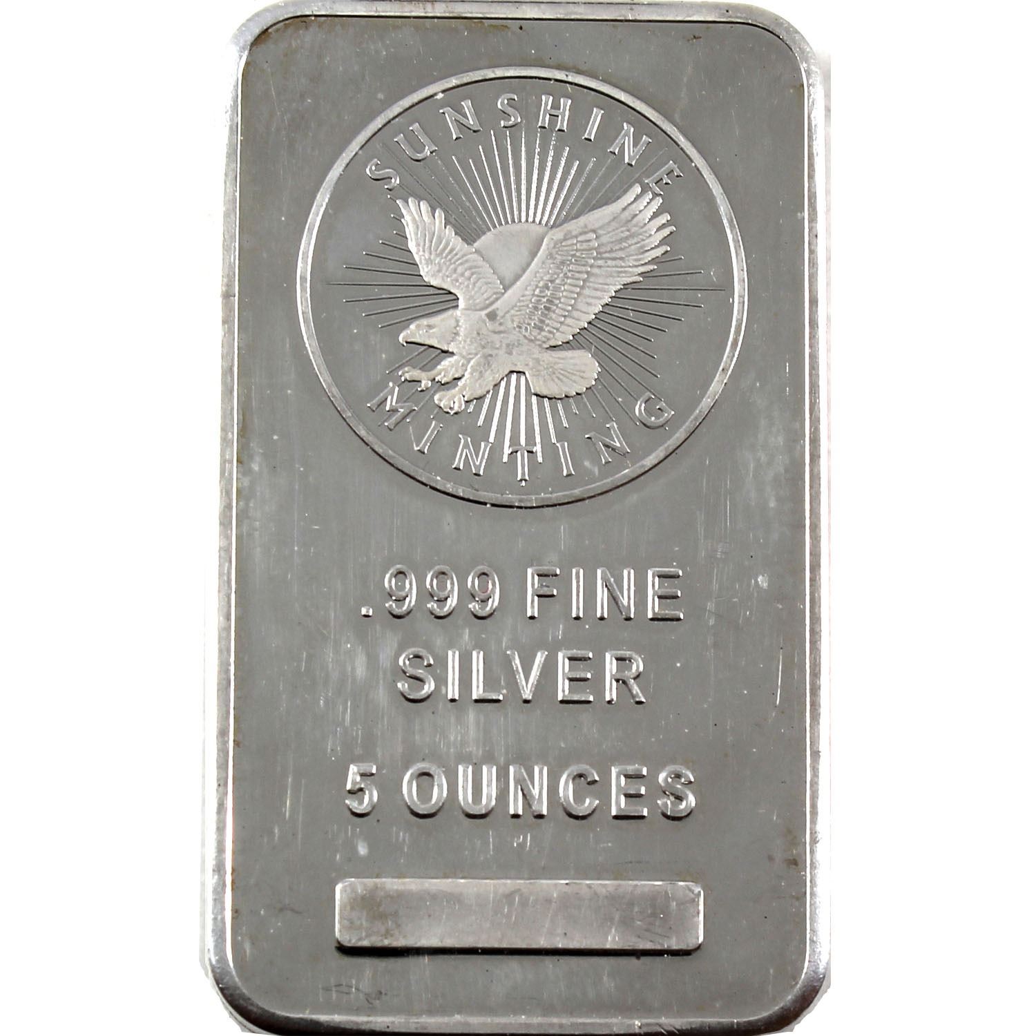 5oz Sunshine Minting .999 Fine Silver Bar (some scratches). TAX Exempt.