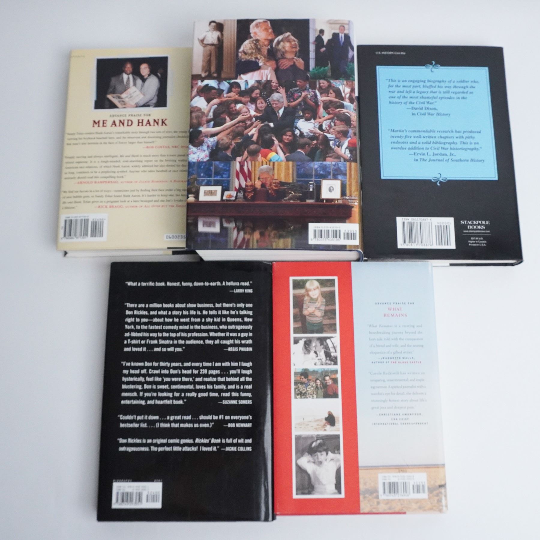 This lot features five compelling hardcover books spanning memoirs, history, and biography. Me and Hank by Sandy Tolan explores the legacy of baseball legend Hank Aaron, delving into race and American culture. What Remains by Carole Radziwill is a poignant memoir detailing love, loss, and resilience, recounting her marriage to Anthony Radziwill and close friendship with John F. Kennedy Jr. Kill-Cavalry by Bruce H. Martin examines the controversial life of Union General Hugh Judson Kilpatrick, known for his daring cavalry raids during the Civil War. Rickles' Book by Don Rickles, co-written with David Ritz, offers a humorous and insightful look at the legendary comedian's life and career. Finally, My Life by Bill Clinton is an expansive autobiography covering his early years, political rise, and two terms as President of the United States. A diverse selection of books, this lot is perfect for collectors, history enthusiasts, and fans of memoirs. Largest book measures 9.5"H.