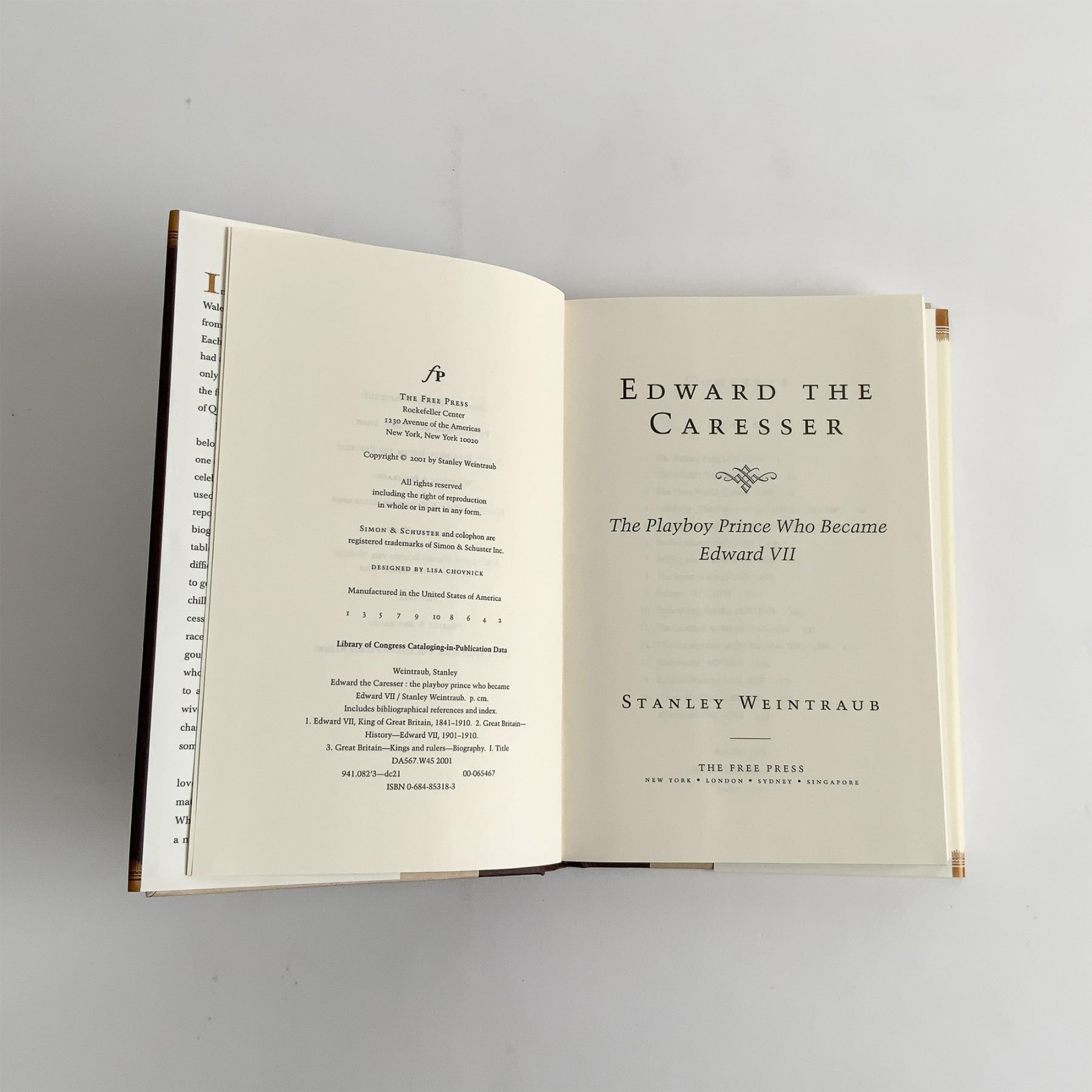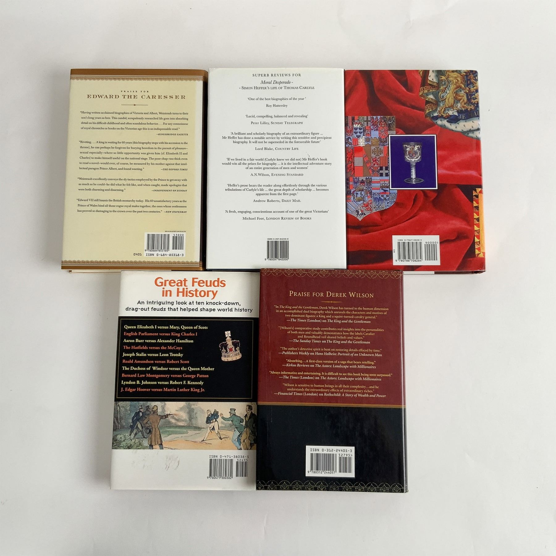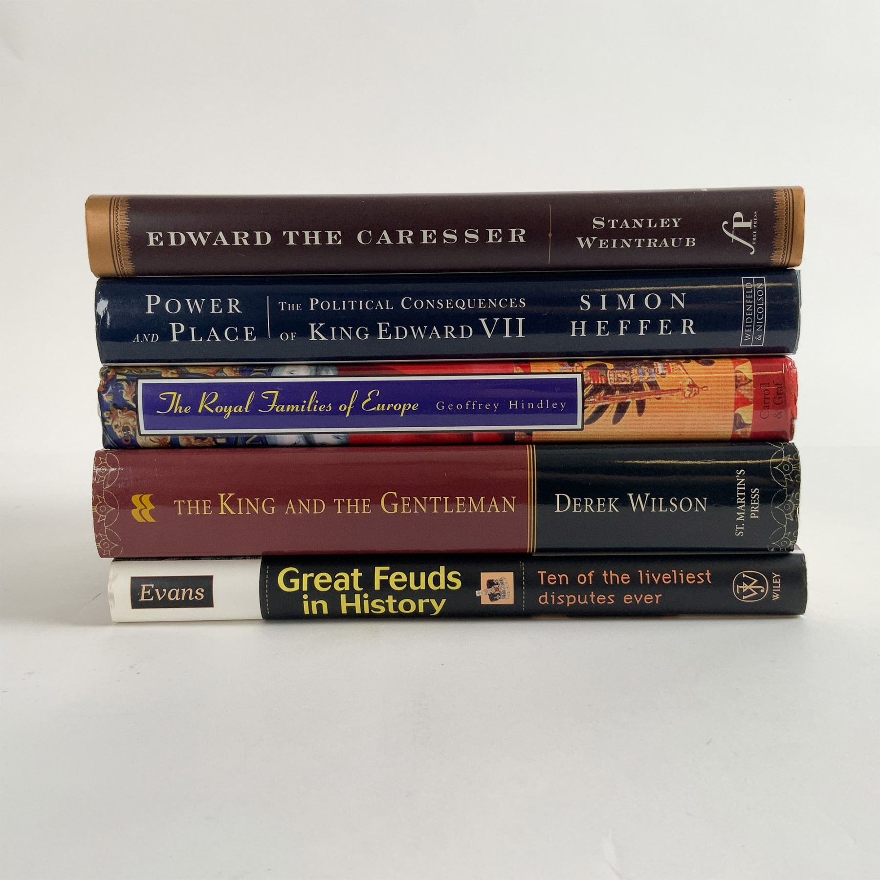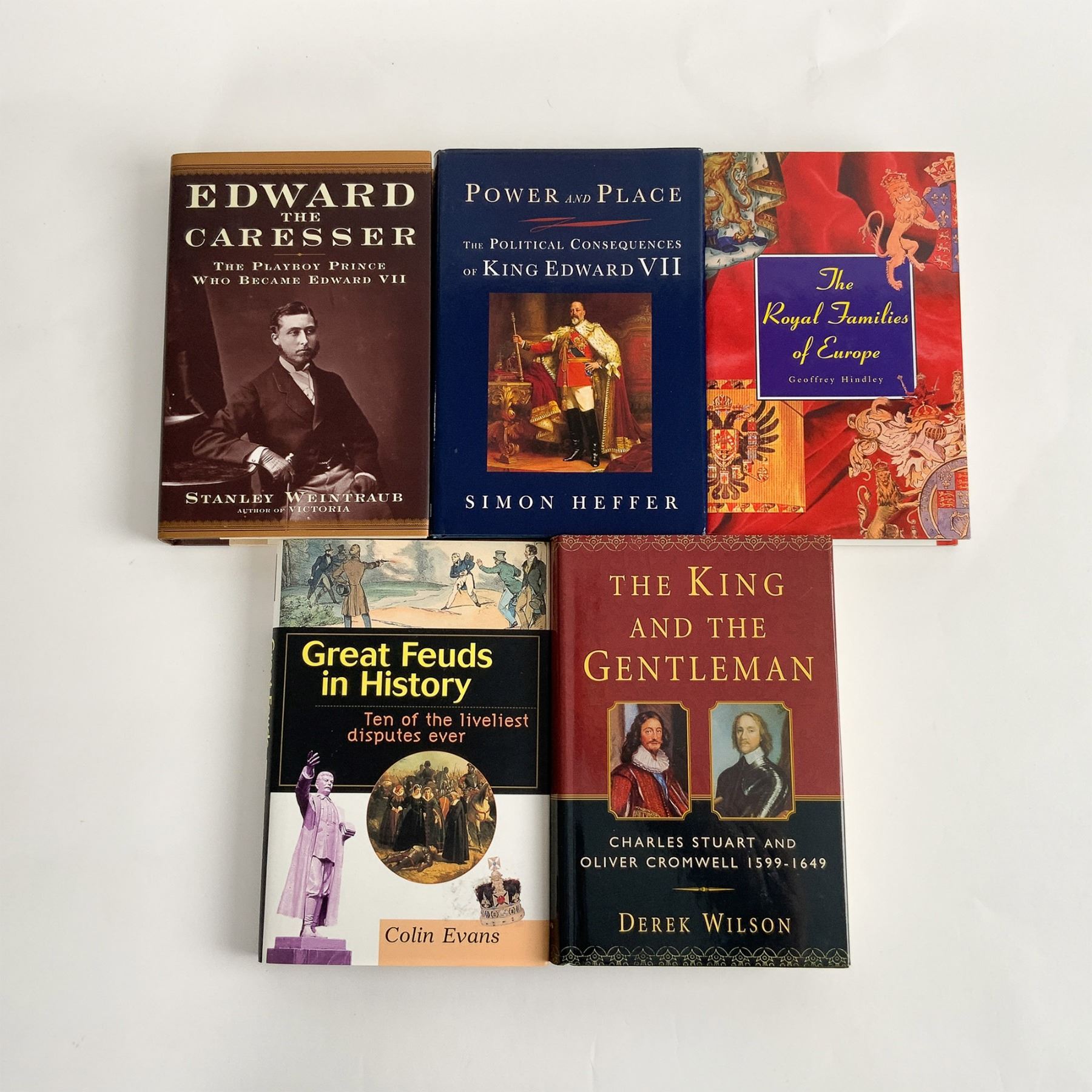This collection of five hardcover books delves into European royalty, historical conflicts, and political intrigue. The Royal Families of Europe by Geoffrey Hindley provides a comprehensive overview of Europe’s royal dynasties and their historical influence. The King and the Gentleman by Derek Wilson explores the power struggle between Charles Stuart and Oliver Cromwell from 1599 to 1649. Edward the Caresser by Stanley Weintraub offers an insightful biography of King Edward VII, examining both his personal and political life. Power and Place: The Political Consequences of King Edward VII by Simon Heffer analyzes the broader political impact of Edward VII’s reign. Great Feuds in History by Colin Evans recounts ten of the most significant disputes and rivalries throughout history. Each book is in good condition with dust jackets intact, showing minimal wear. This set is ideal for history enthusiasts, collectors, or anyone interested in royal biographies and historical conflicts. Largest book measures 9.5"H.