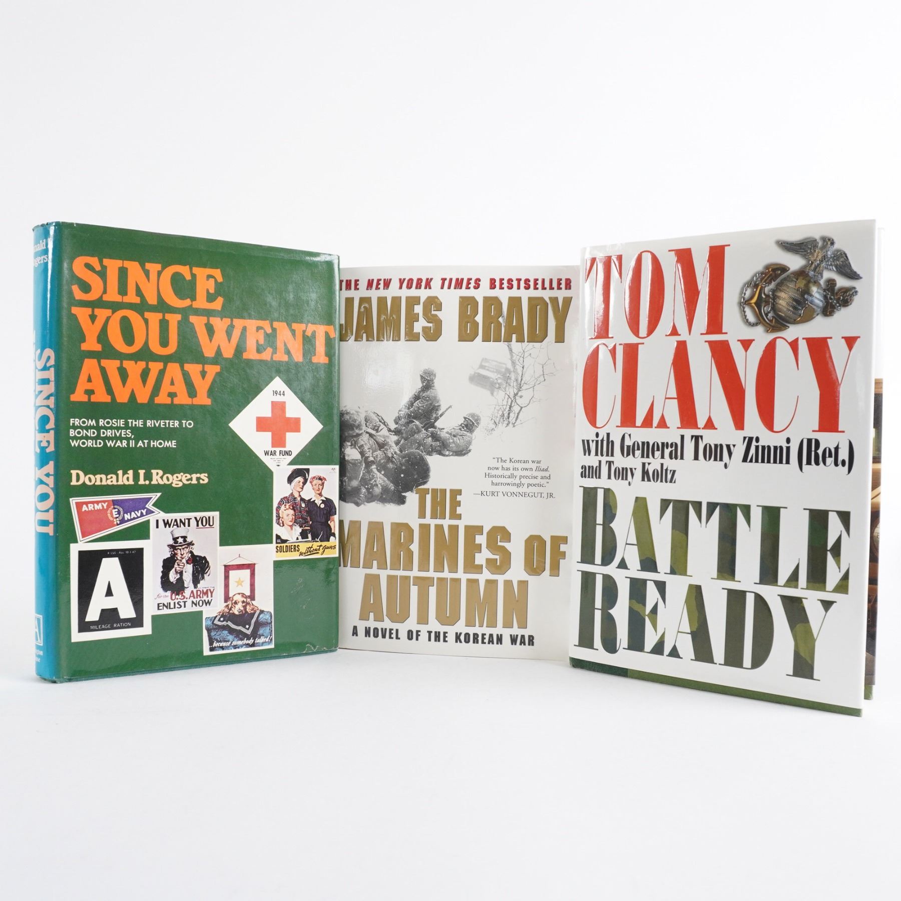 This collection of five books explores military strategy, historical battles, and the lives of warriors across different eras. Military Mavericks: Extraordinary Men of Battle by David Rooney examines unconventional military leaders. Secrets of the Samurai delves into the philosophy and combat techniques of Japans legendary warriors. Since You Went Away by Donald I. Rogers presents a compelling account of wartime experiences on the home front. The Marines of Autumn by James Brady is a gripping novel of the Korean War. Battle Ready by Tom Clancy, with General Tony Zinni, provides a deep dive into modern military operations. A must-have set for history buffs, war scholars, and military enthusiasts. Largest book measures 9.25"H.