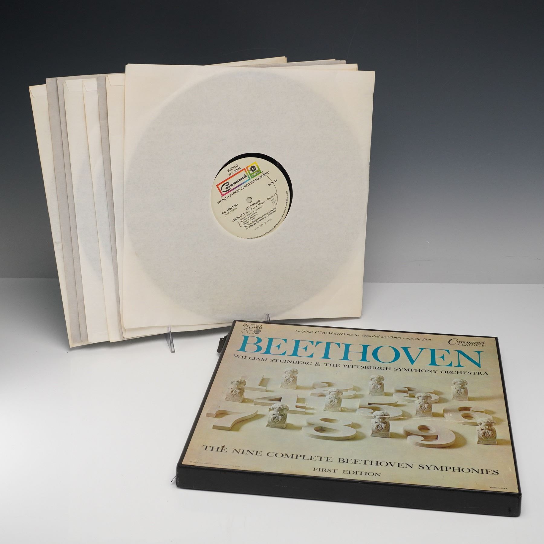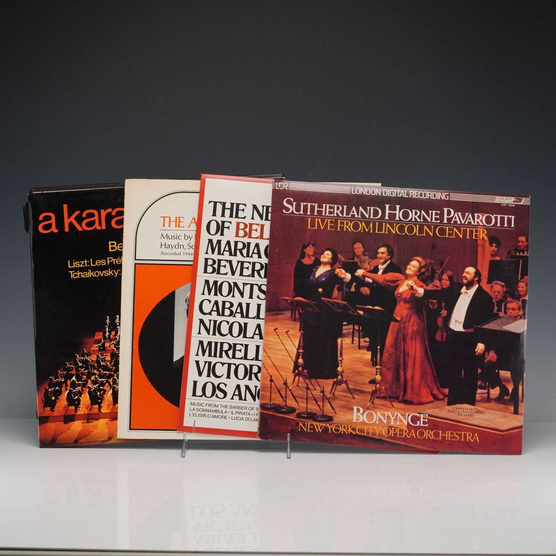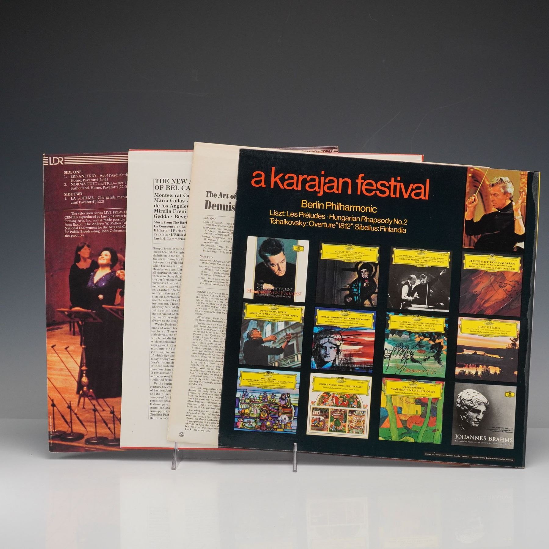 This 5-piece group includes Sutherland Horne Live from Lincoln Center, The New Age of Bel Canto, The Art of Dennis Brain, A Karajan Festival, and Beethoven performed by William Steinberg with the Pittsburgh Symphony Orchestra. Each vinyl record is housed in its original jacket with inner sleeve, showcasing notable performances from acclaimed conductors, orchestras, and soloists. A well-rounded selection representing both operatic and symphonic excellence from the mid-20th-century classical era.