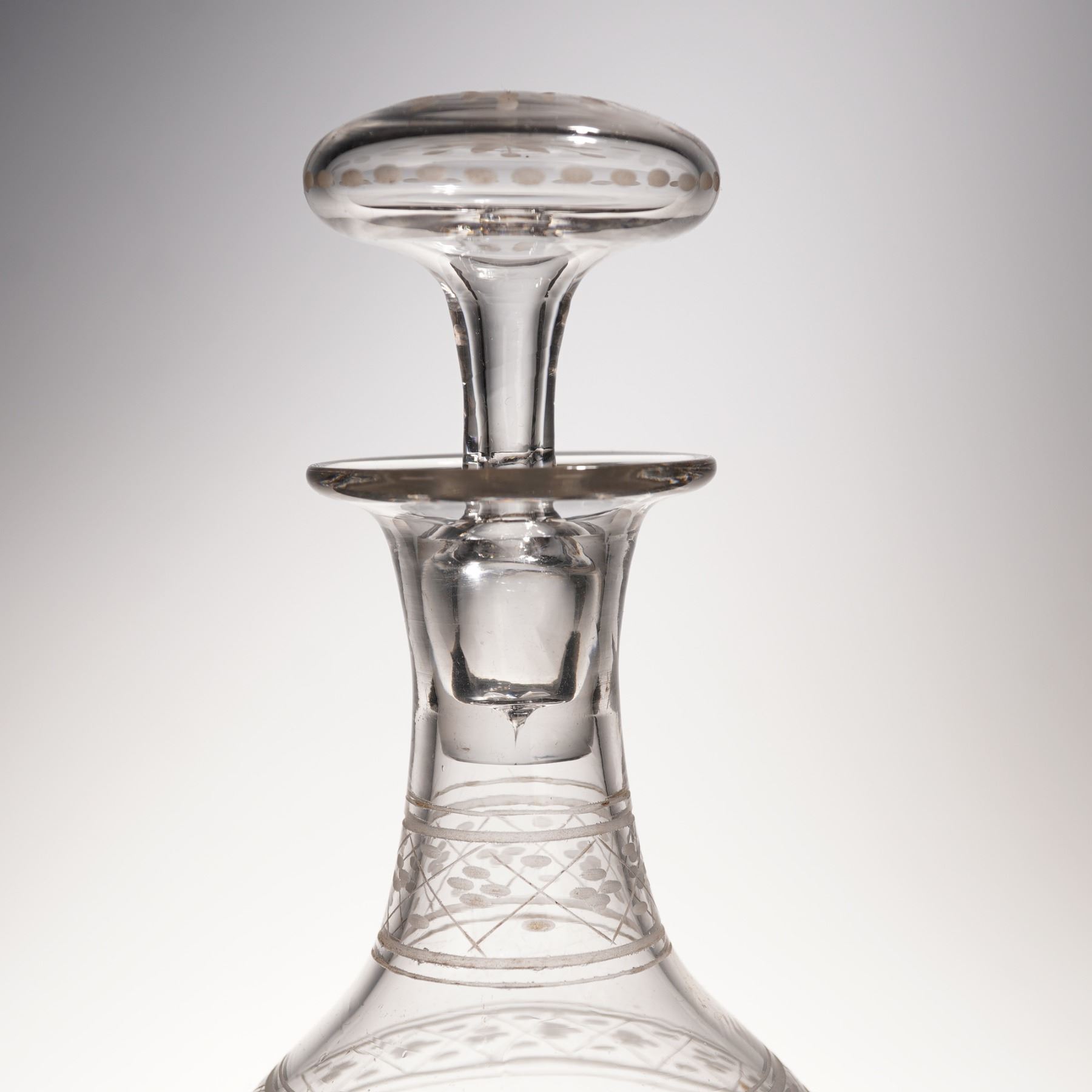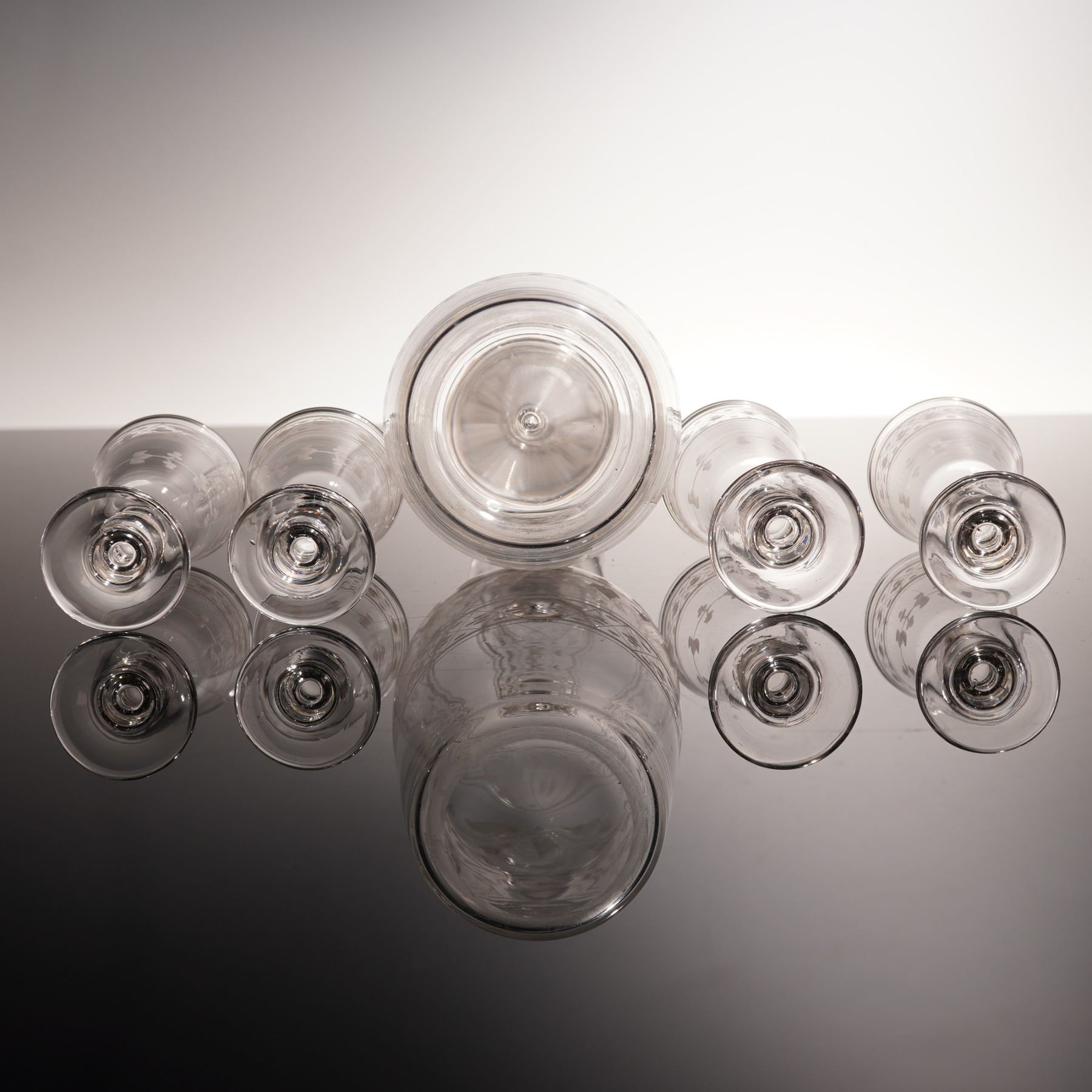 5pc Etched Crystal Decanter with Stopper and Cordial Glass Set